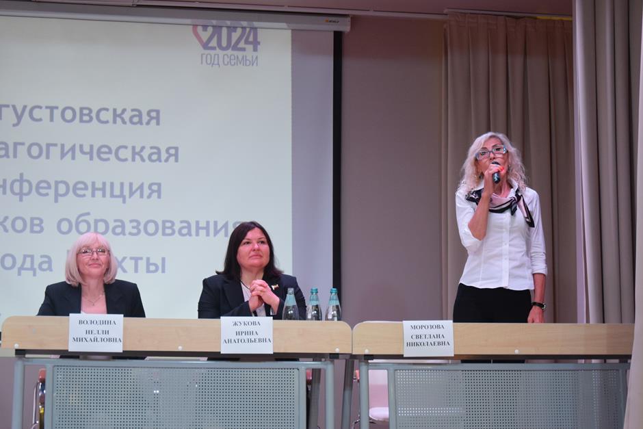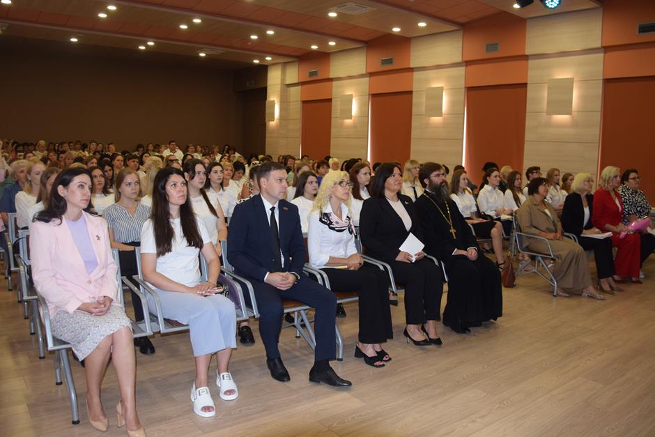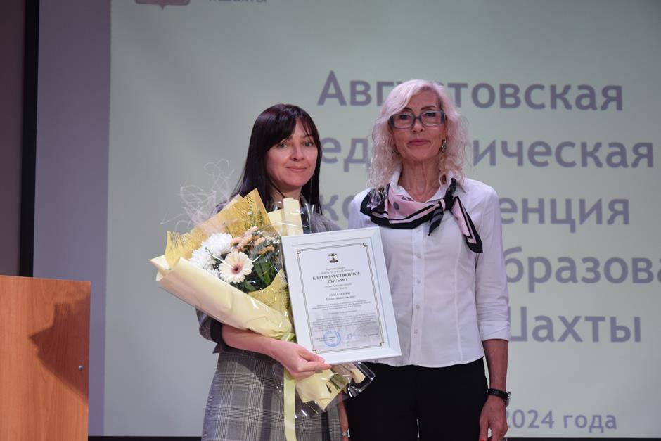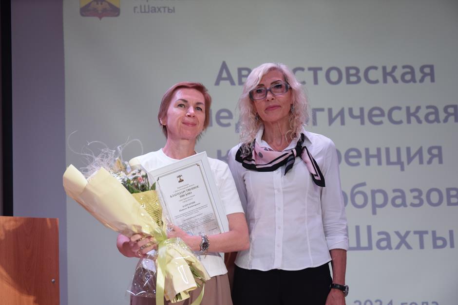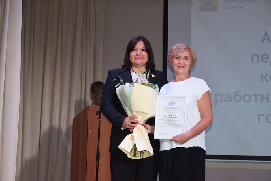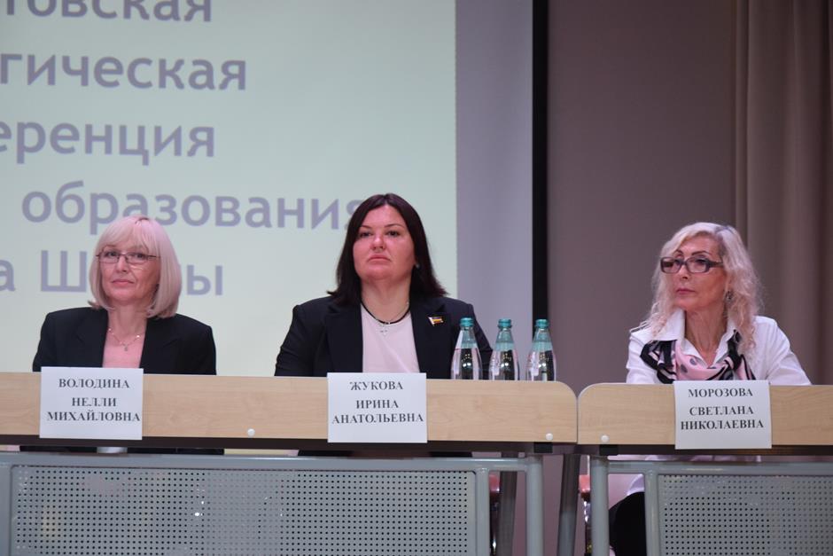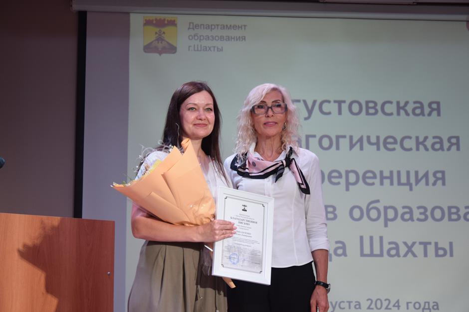 Встреча работников образования состоялась в школе №38. С приветственным словом к участникам августовской конференции обратились председатель комитета Законодательного Собрания Ростовской области по взаимодействию с общественными объединениями, молодежной политике, физической культуре, спорту и туризму Ирина Жукова, заместитель комитета городской Думы по социальной политике Вадим Новоселов, исполняющий обязанности заместителя главы Администрации Светлана Морозова, помощник депутата ЗСРО Евгения Понамаренко Татьяна Гвоздарева, председатель шахтинской городской организации профсоюза работников образования и науки Российской Федерации Людмила Морозова, Благочинный Александровск-Грушевского округа, иерей Александр Теличкин. Выступавшие пожелали педагогическому сообществу успехов в грядущем учебном году и отметили лучших наградами государственного, областного и муниципального уровней — за высокие профессиональные достижения.