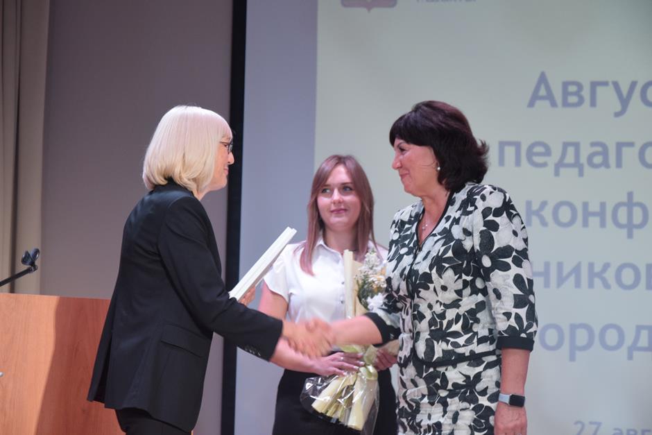 На педагогической конференции также обсудили итоги проделанной работы и основные направления развития муниципальной системы образования – они прозвучали в докладе директора Департамента образования Нелли Володиной. В формате видеообращения перед собравшимися выступил министр просвещения РФ Сергей Кравцов. Он сообщил о мерах поддержки, принятых главой государства, в отношении классных руководителей, советников директоров по воспитанию и др.