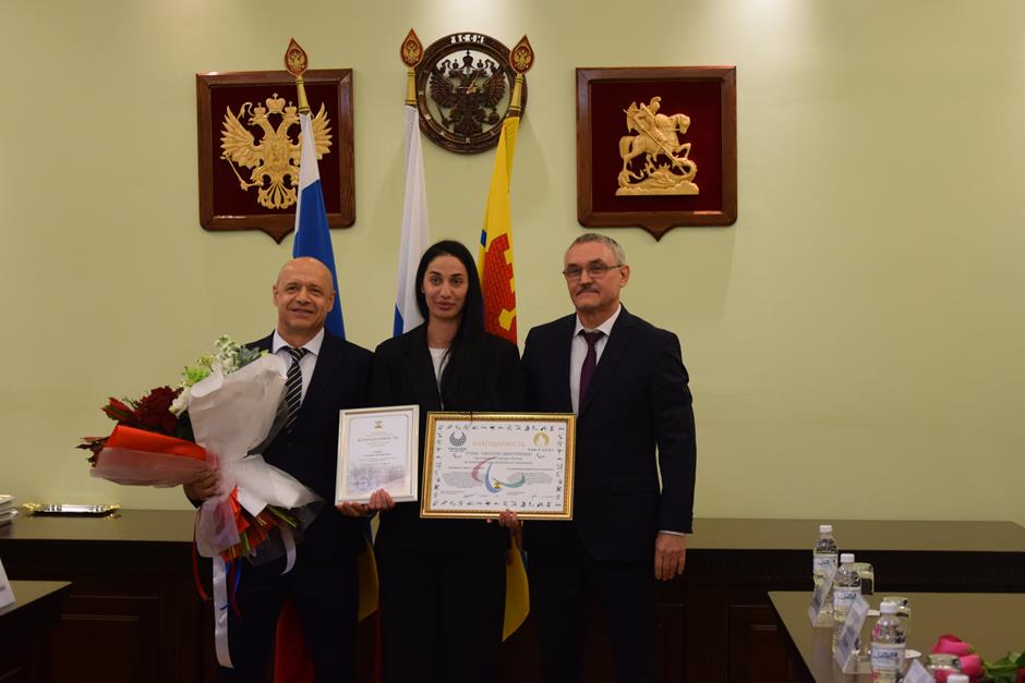 В Шахтах состоялось чествование паралимпийцев Дарьи Лукьяненко, Владимира Сотникова, спортсменов СК «Боец» — победителей и призеров Первенства мира по рукопашному бою и их тренеров
