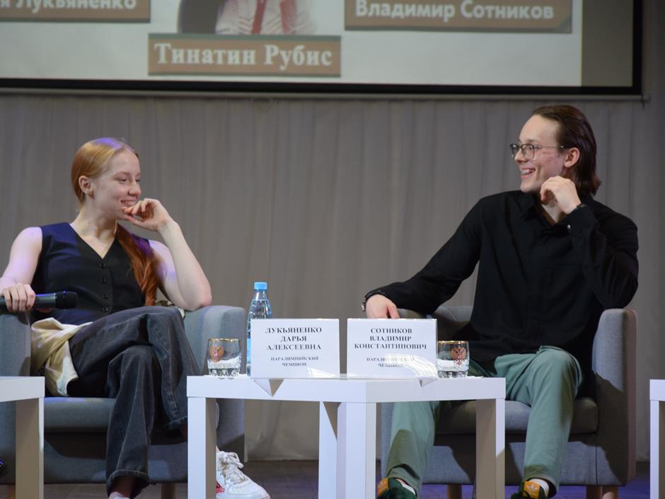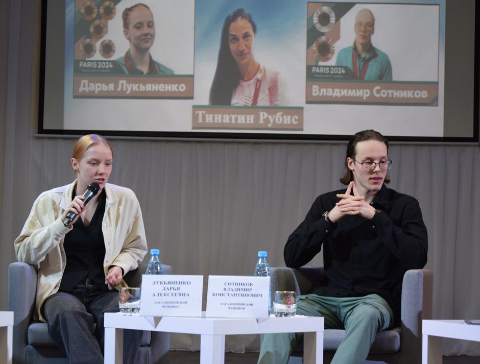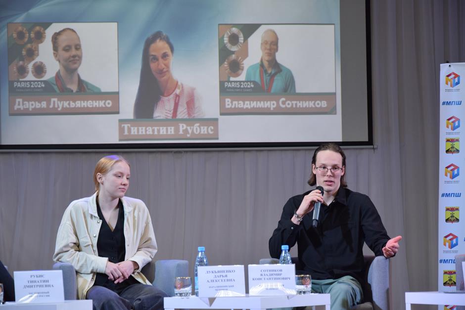 Героями открытого диалога стали наши пловцы Дарья Лукьяненко и Владимир Сотников, достойно выступившие на Паралимпийских играх в Париже. В спортивную копилку страны ребята добавили семь медалей, три из которых — высшей пробы, а также два мировых и один Паралимпийский рекорд. Они тренируются в Центре олимпийской подготовки №1 (занятия организованы на базе спортшколы №1, в спортивном комплексе «Артемовец») под наставничеством заслуженного тренера России Тинатин Рубис.