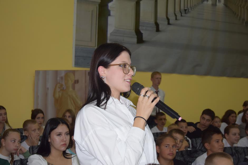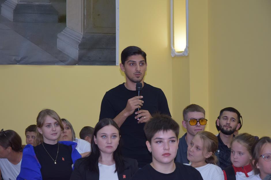 Спортсмены поделились с молодежью своими впечатлениями от поездки в Париж, участия в главных международных соревнованиях и поддержки многочисленных болельщиков, а также рассказали о том, что вдохновило их заниматься плаванием. Аудитория оживленно задавала вопросы об увлечениях, кумирах и запоминающихся случаях из спортивной карьеры. В обсуждении активно принимала участие и Тинатин Дмитриевна, которую попросили поделиться своими секретами воспитания чемпионов.