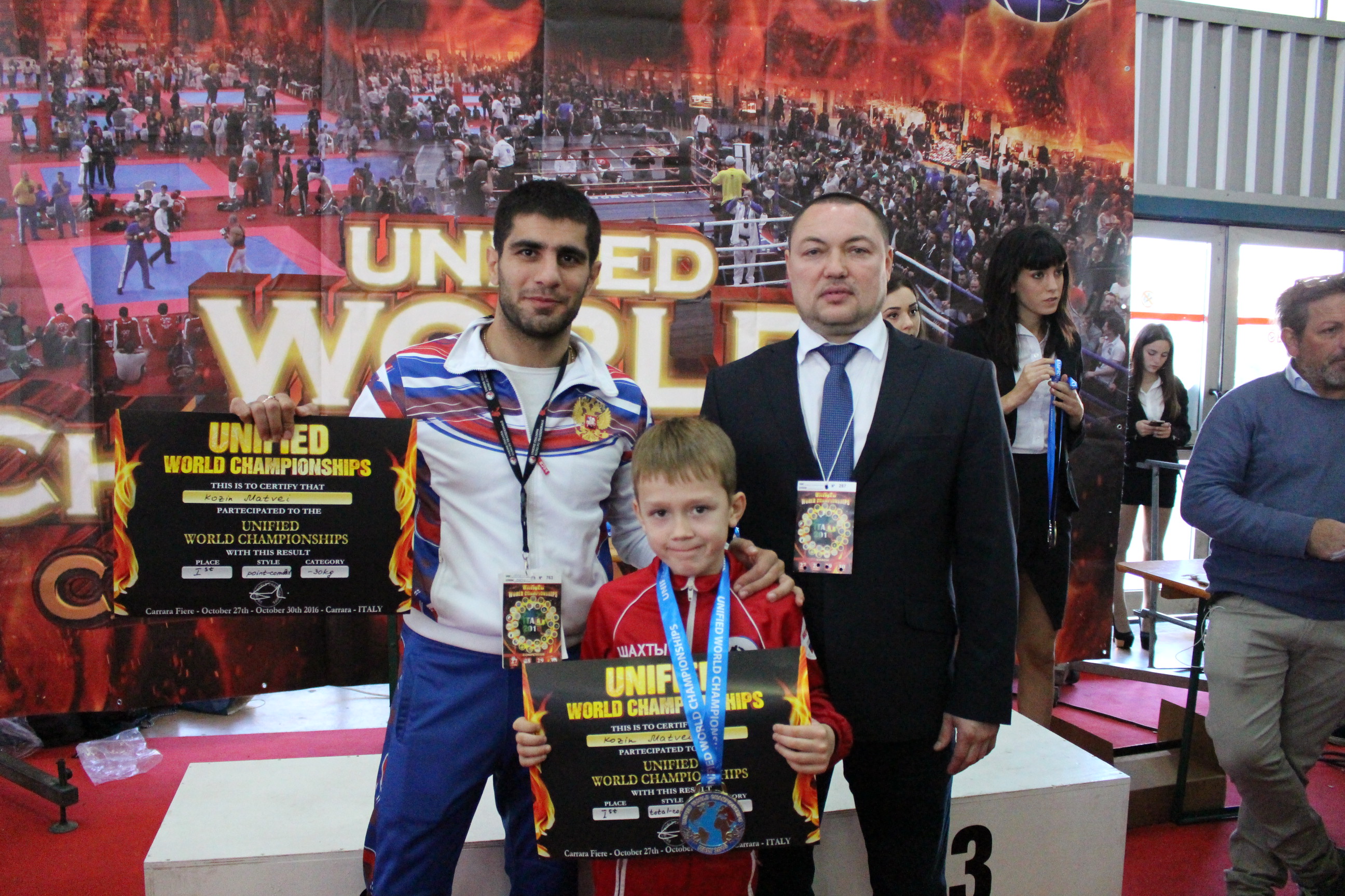 С 25 по 30 октября в Италии проходил Объединенный Чемпионат Мира — 2016 (UNIFIED WORLD CHAMPIONSHIPS — 2016). В чемпионате приняло участие свыше 5000 спортсменов из 50 стран и 5 континентов. За сборную Российской Федерации выступал воспитанник шахтинского спортивного клуба «Боец» Матвей Козин. На протяжении пяти дней Матвей провёл четыре поединка и во всех одержал уверенную победу! В первом поединке Матвей одержал победу над французом , второй бой выиграл у спортсмена из Таджикистана, в третьем бою вырвал победу у спортсмена из России, а в финале за звание быть лучшим он сражался с итальянцем и одержал досрочную победу. По итогам соревнований в возрастной категории 8-9 лет в весовой категории до 30 кг 1-ое место уверенная победа завоевана шахтинцем Матвеем Козиным! Он тренируется под руководством президента СК «Боец» Мхитара Аветисяна.