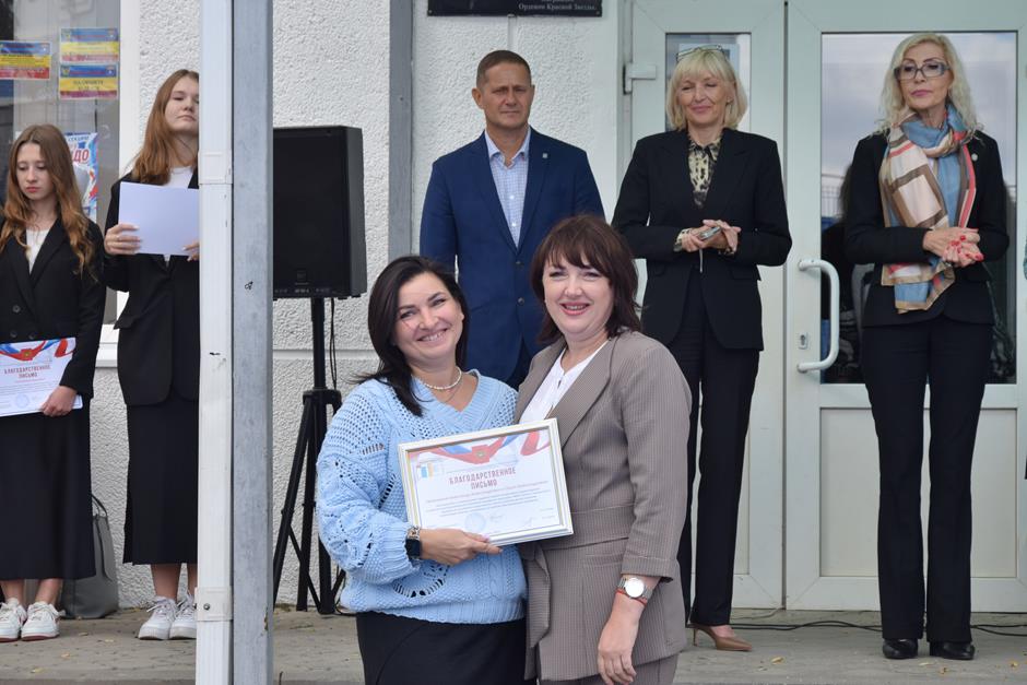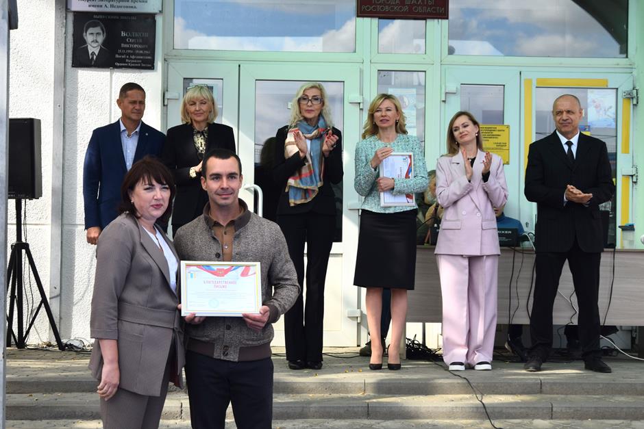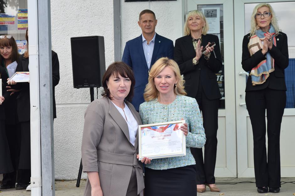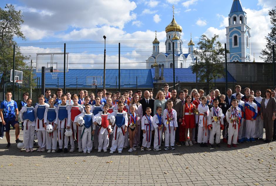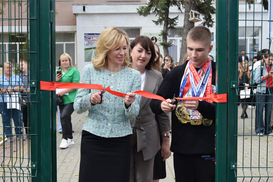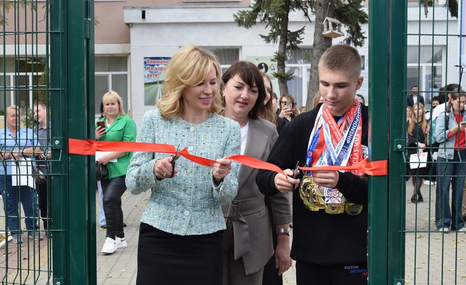Право перерезать ленту и открыть многофункциональную спортивную площадку было предоставлено Екатерине Стенякиной, Наталье Поповой и учащемуся образовательного учреждения, трехкратному чемпиону России и мира по рукопашному бою среди юниоров Григорию Мелехову.