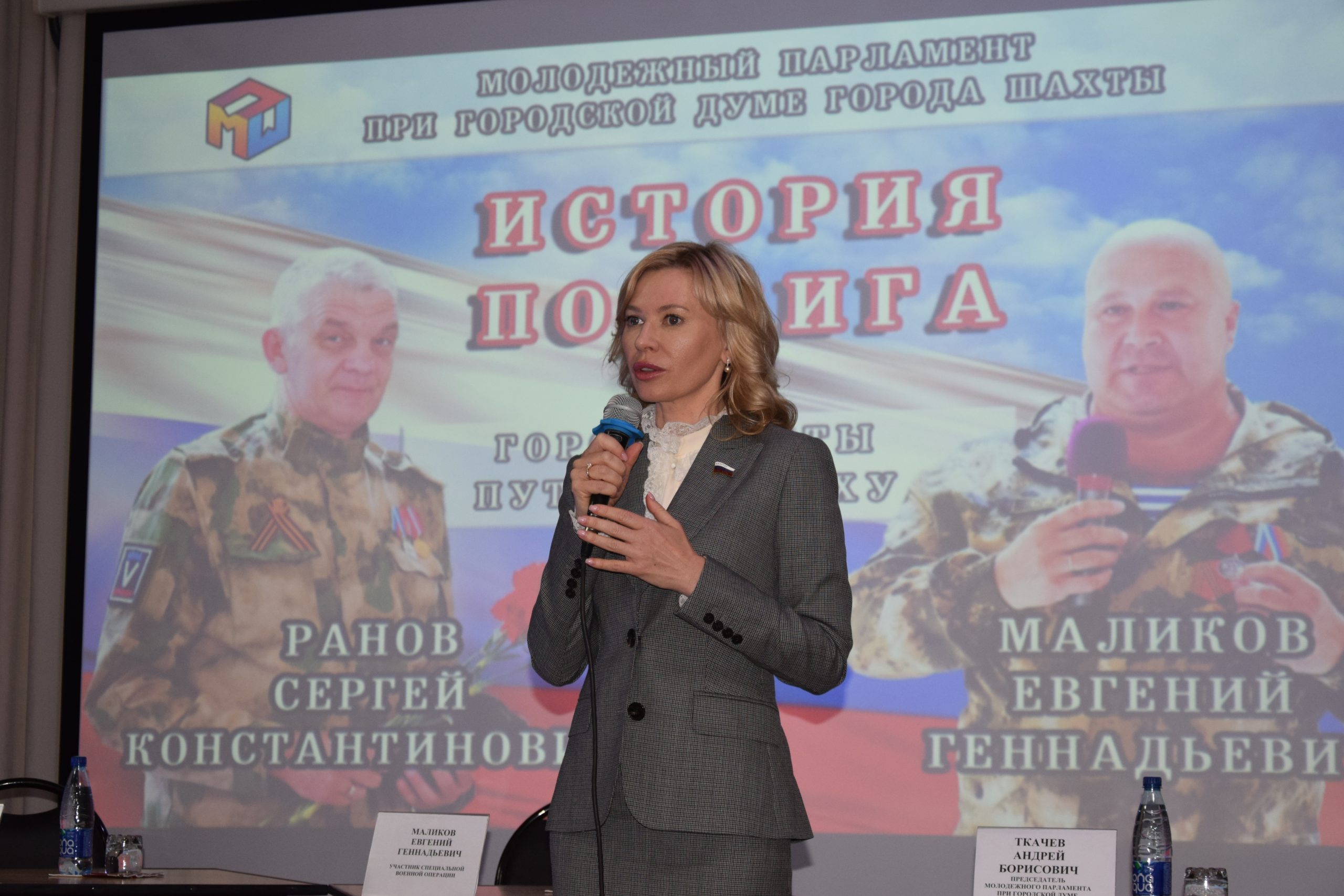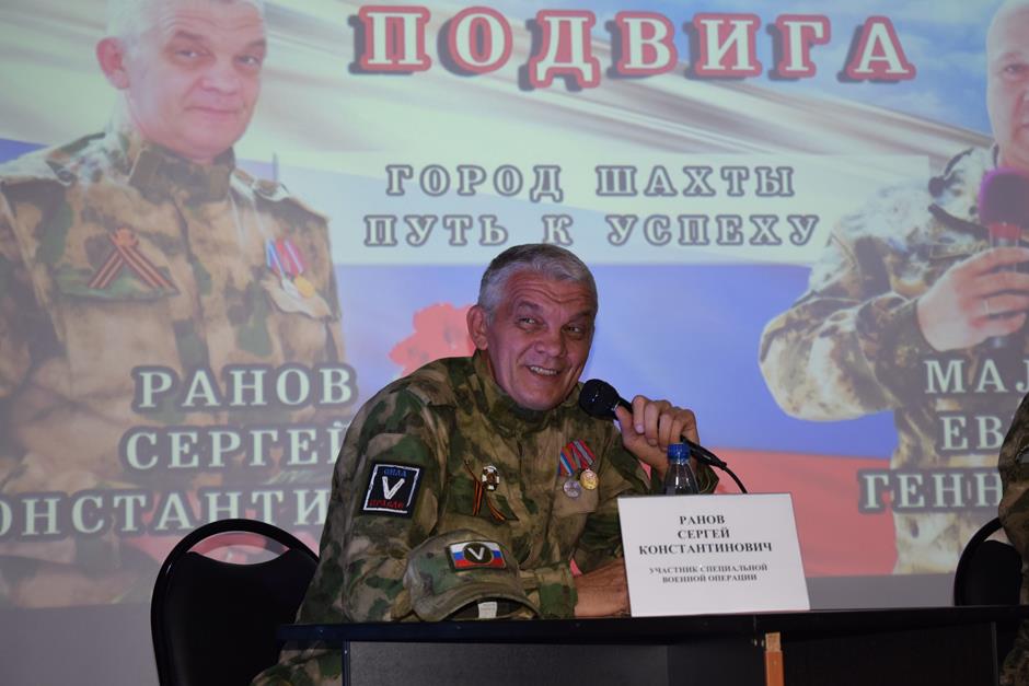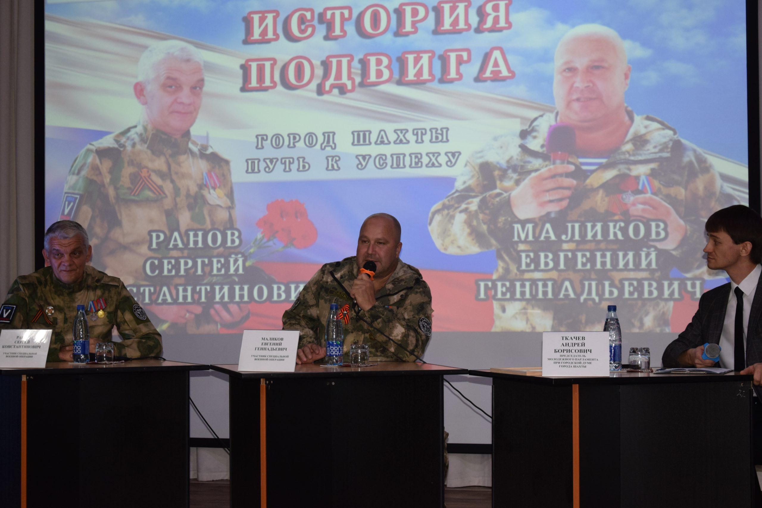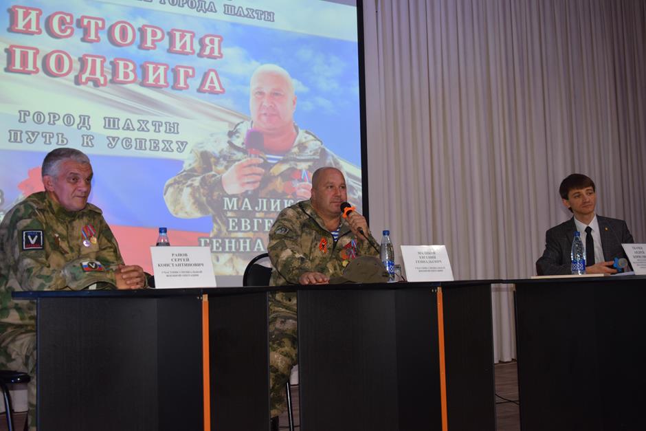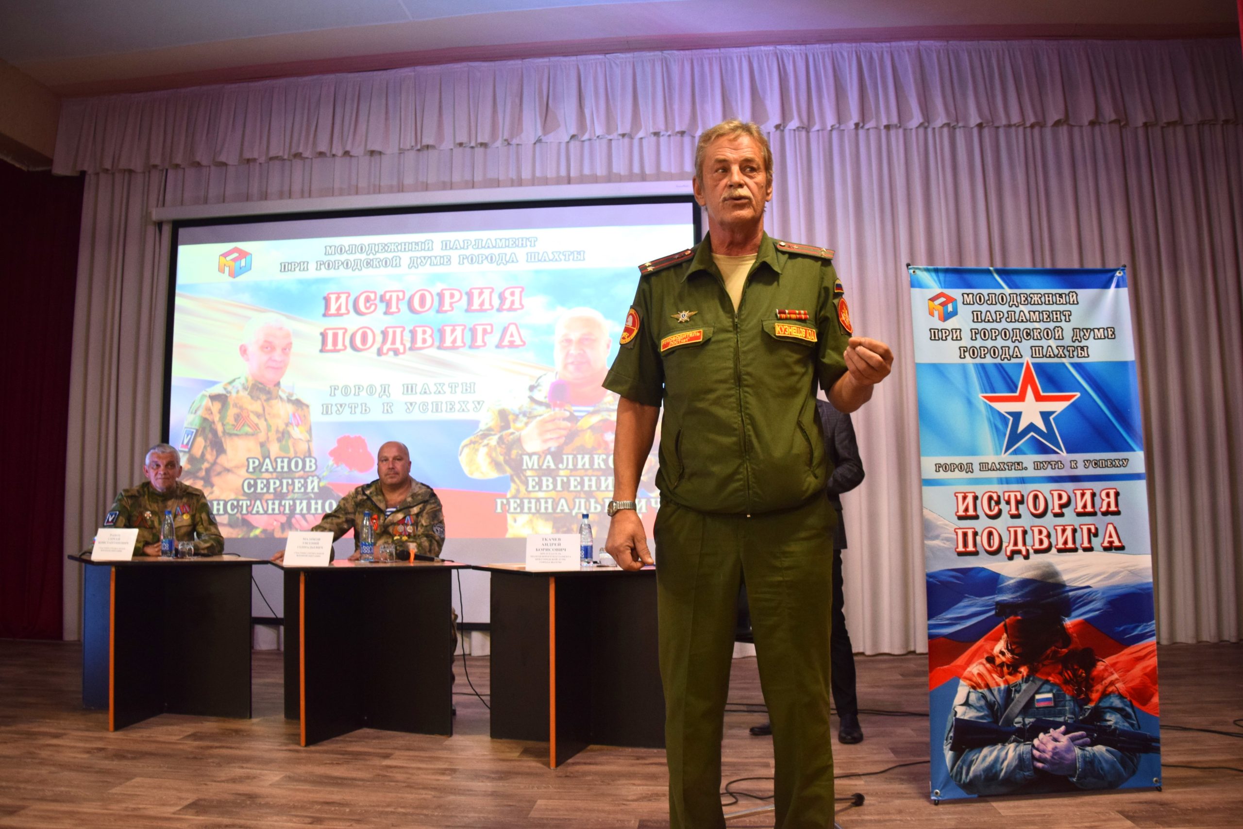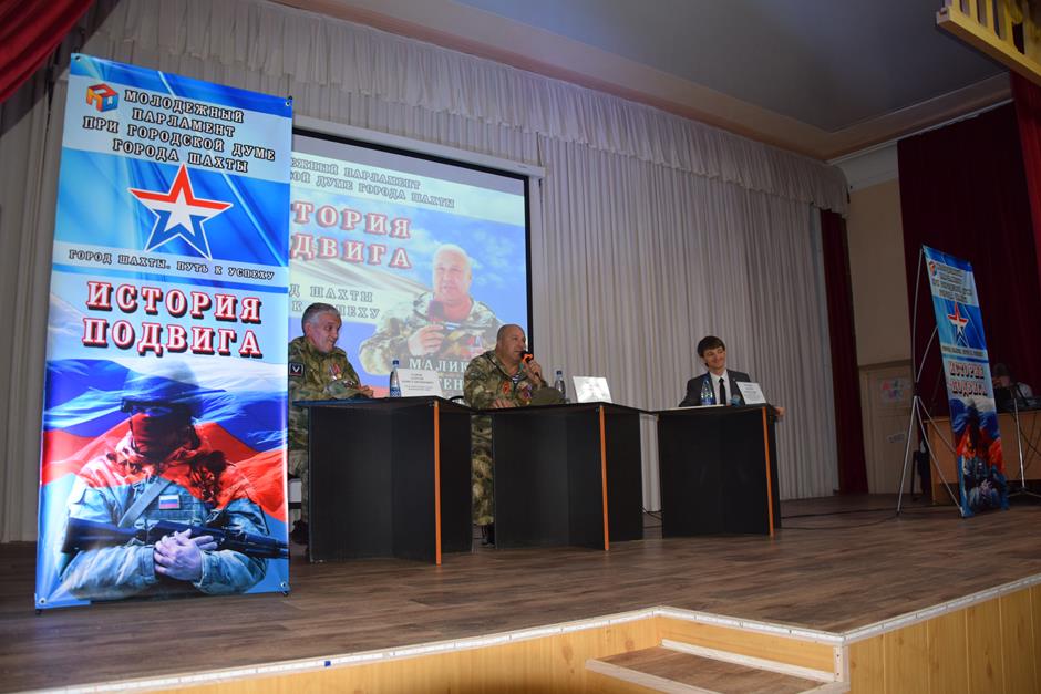 «История Подвига» — это открытый диалог между подрастающим поколением и защитниками Отечества, организованный Молодежным парламентом при городской Думе. Он состоялся в рамках проекта МПШ «Город Шахты. Путь к успеху». Главными героями встречи в стенах шахтинского регионального колледжа топлива и энергетики им. ак. Степанова П.И. стали участники специальной военной операции Сергей Ранов (награжден медалью «За боевые заслуги») и Евгений Маликов (удостоен медали ордена «За заслуги перед Отечеством» II степени).