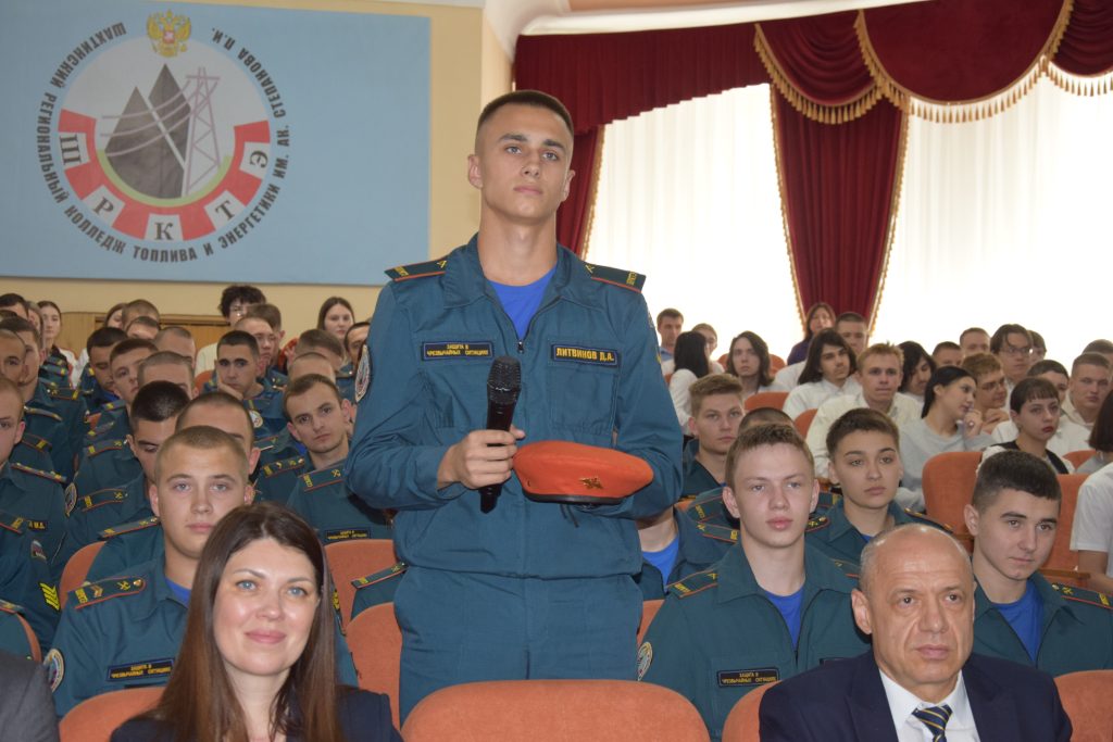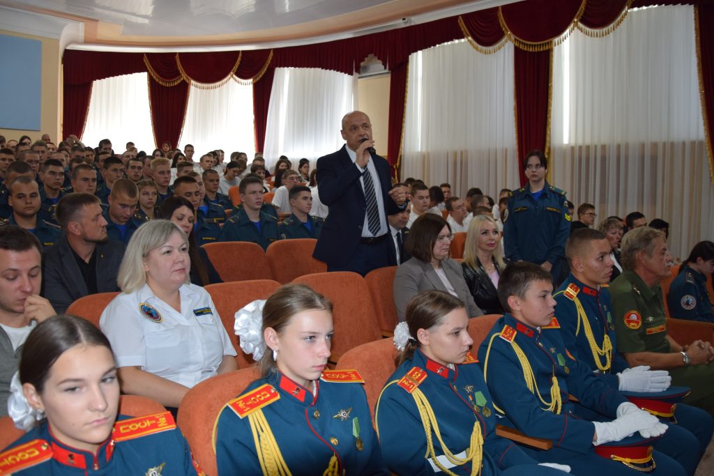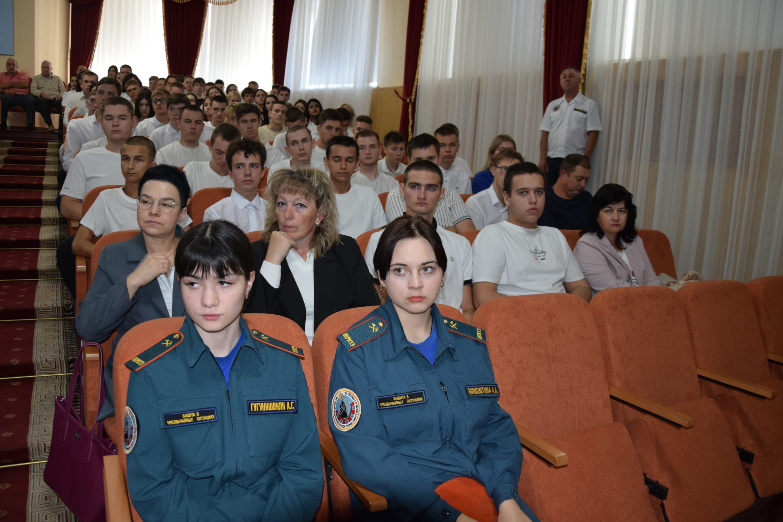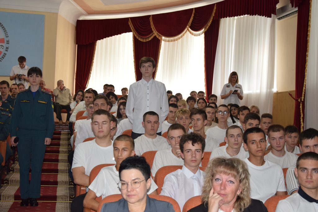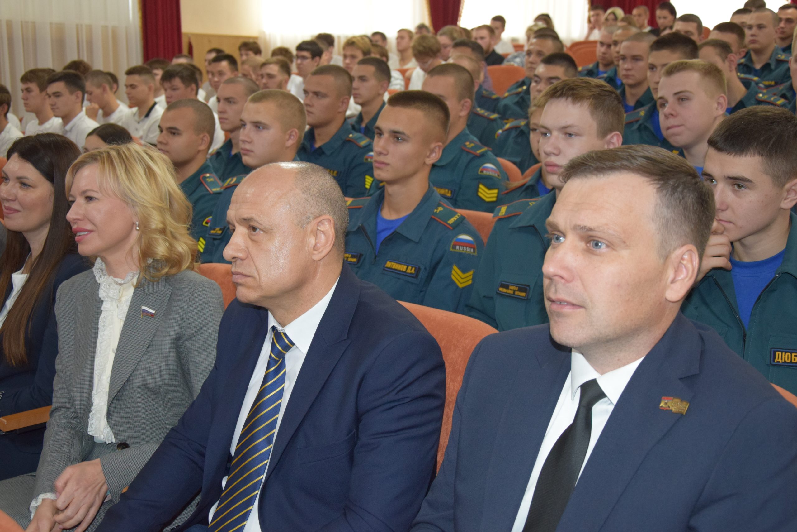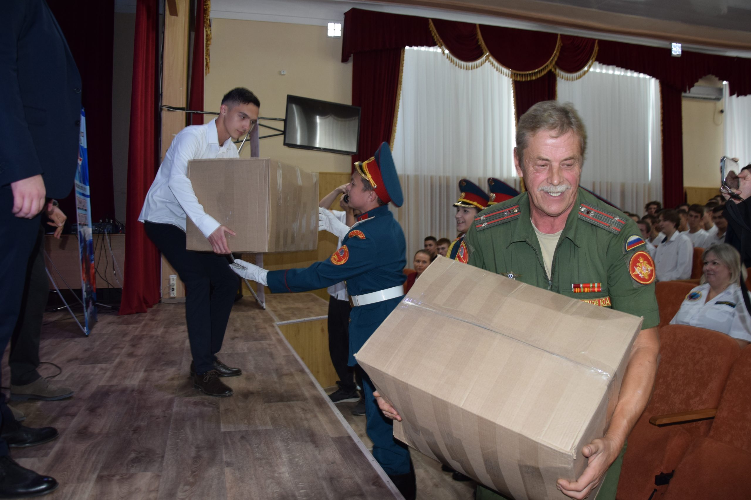 К молодым людям, будущим защитникам Отечества, обратились председатель Молодежного парламента при Законодательном Собрании Ростовской области Никита Корелов и председатель комитета по экономической политике Молодежного парламента при ЗСРО Денис Бобровник. Воспитанникам «Поста №1», достойно и мужественно несущим доверенную службу, они передали 40 комплектов новой формы.