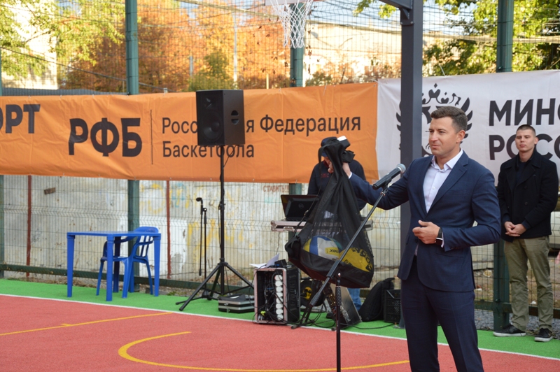 Председатель городской Думы – глава города Шахты Константин Корнеев принял участие в открытии многофункциональной спортивной площадки на ул. Шевченко, 76В