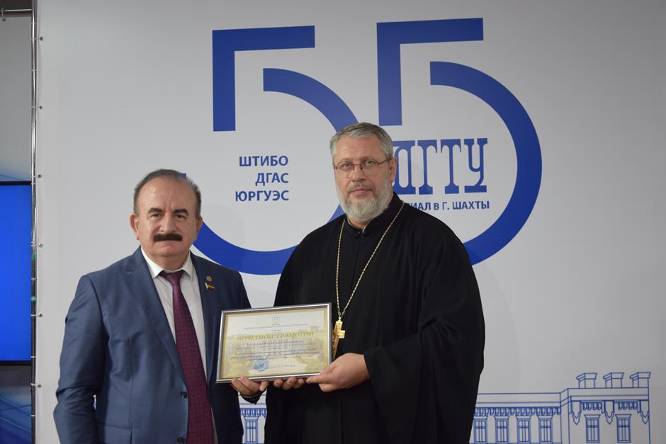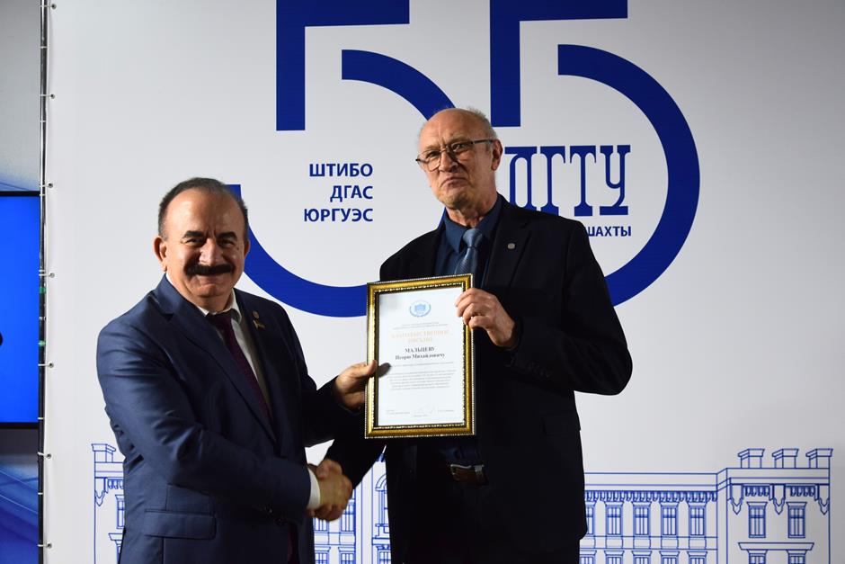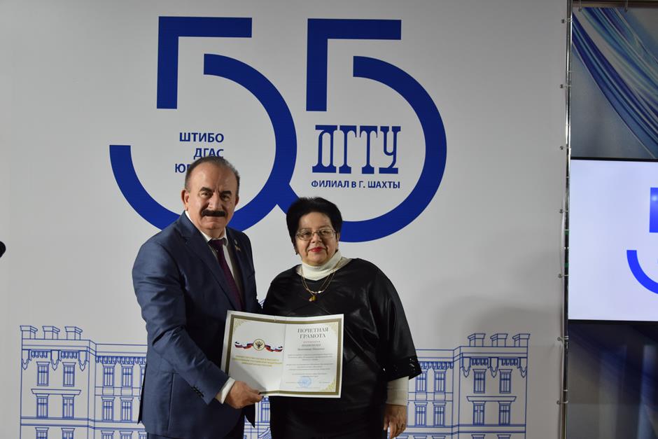 От депутатского корпуса и председателя городской Думы – главы города Шахты Константина Корнеева выступил председатель комитета городской Думы города Шахты по регламентным вопросам и депутатской этике Виктор Яровой. Благодарственными письмами городской Думы за многолетний и добросовестный труд, заслуги и достижения в научно-педагогической деятельности, большой вклад в подготовку квалифицированных кадров отмечены: