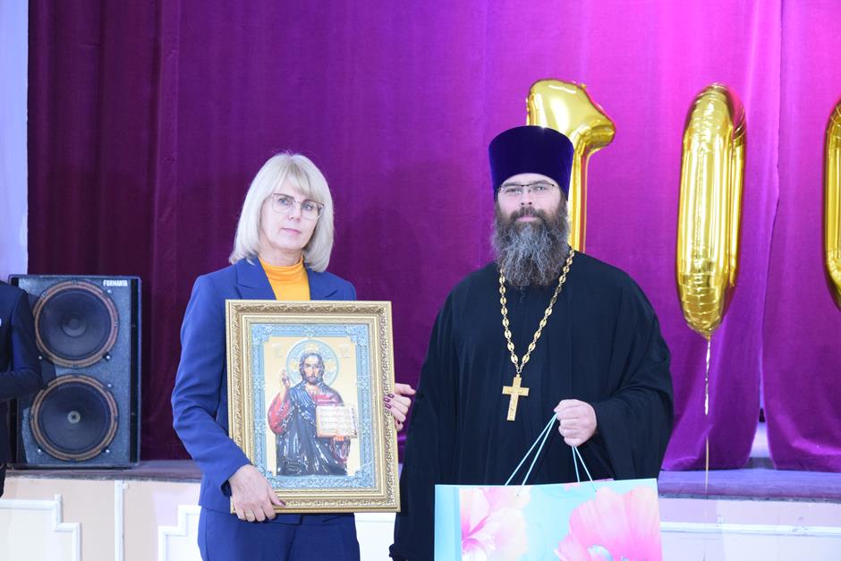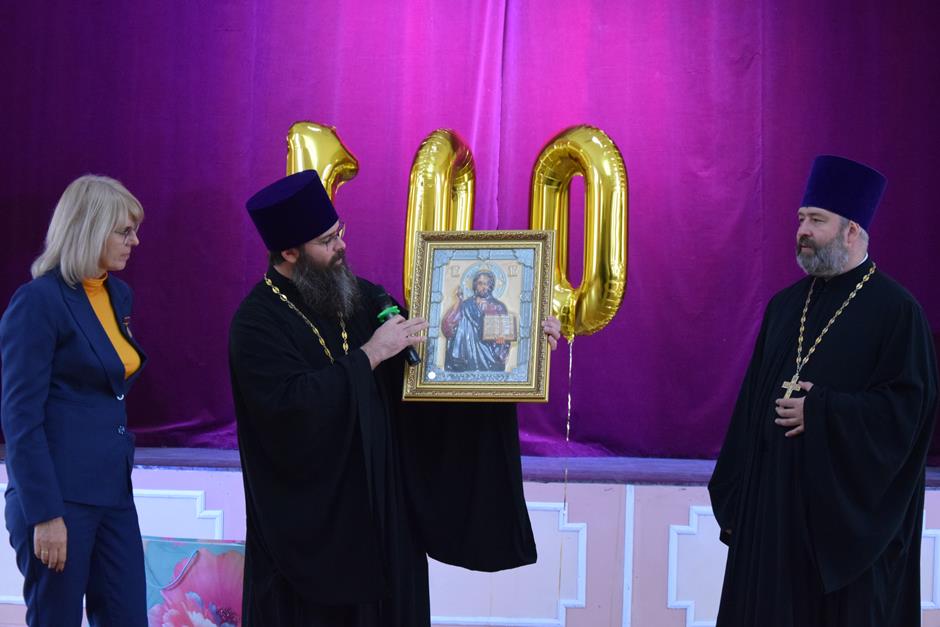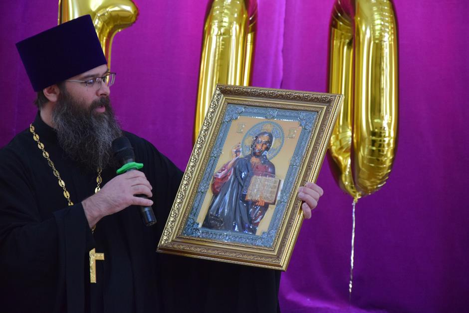 Символичные подарки коллективу и членам организации преподнес иерей Александр Теличкин – три иконы, выполненные в особой технике для незрячих людей.