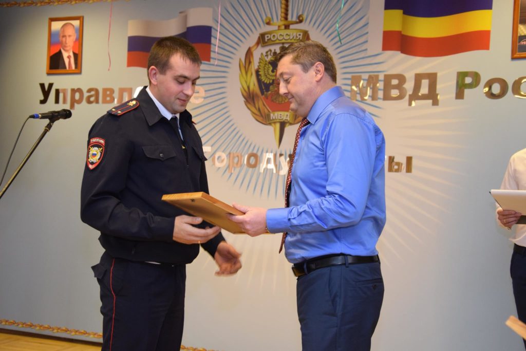 Обращаясь к присутствующим, И.И.Медведев отметил, что в органах правопорядка города работают лучшие из лучших, об этом свидетельствуют многочисленные благодарности жителей. И Администрация города будет стараться делать всё для того, чтобы облегчить труд полицейских и обеспечить безопасность горожан, в частности, будут установлены ещё несколько десятков видеокамер по городу. Он пожелал сотрудникам внутренних дел здоровья, сил и крепкого тыла, семейного благополучия!