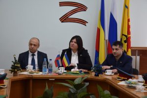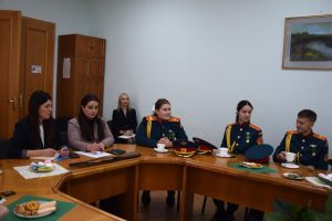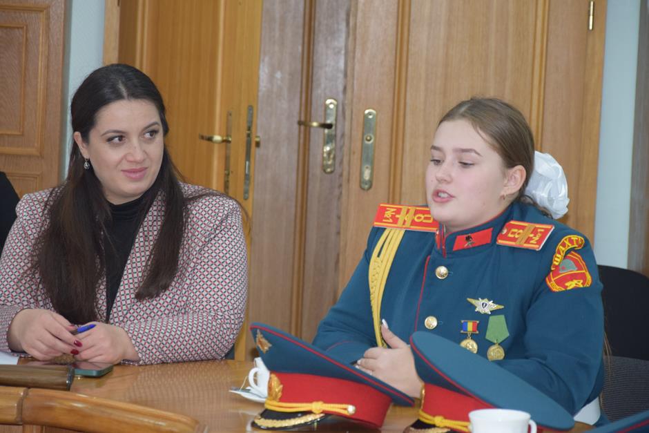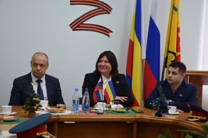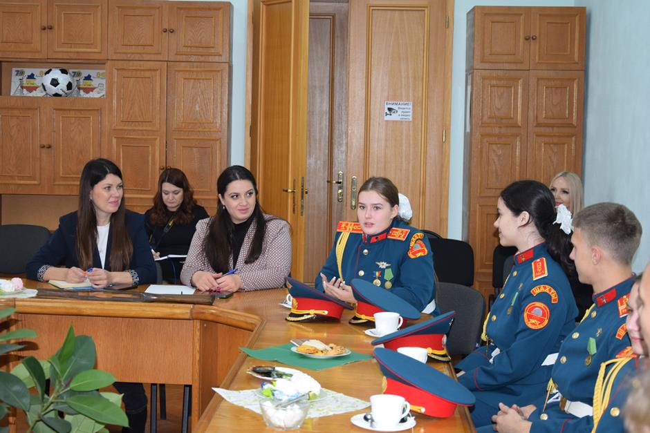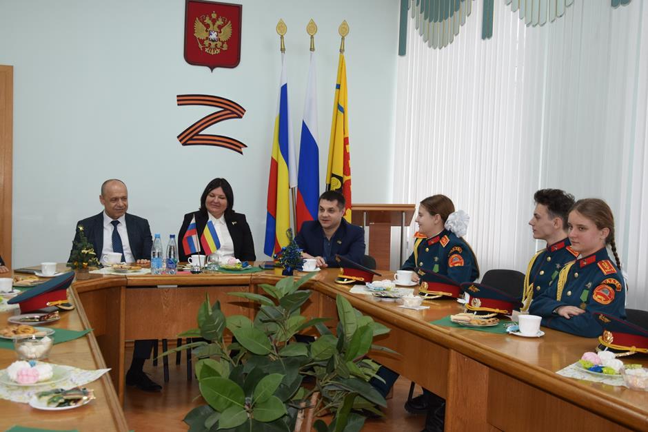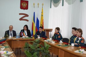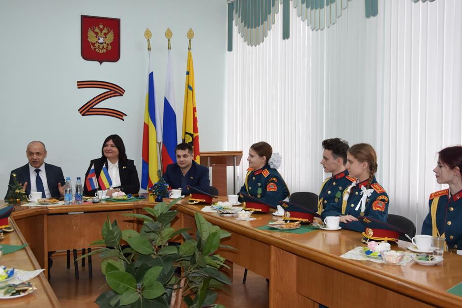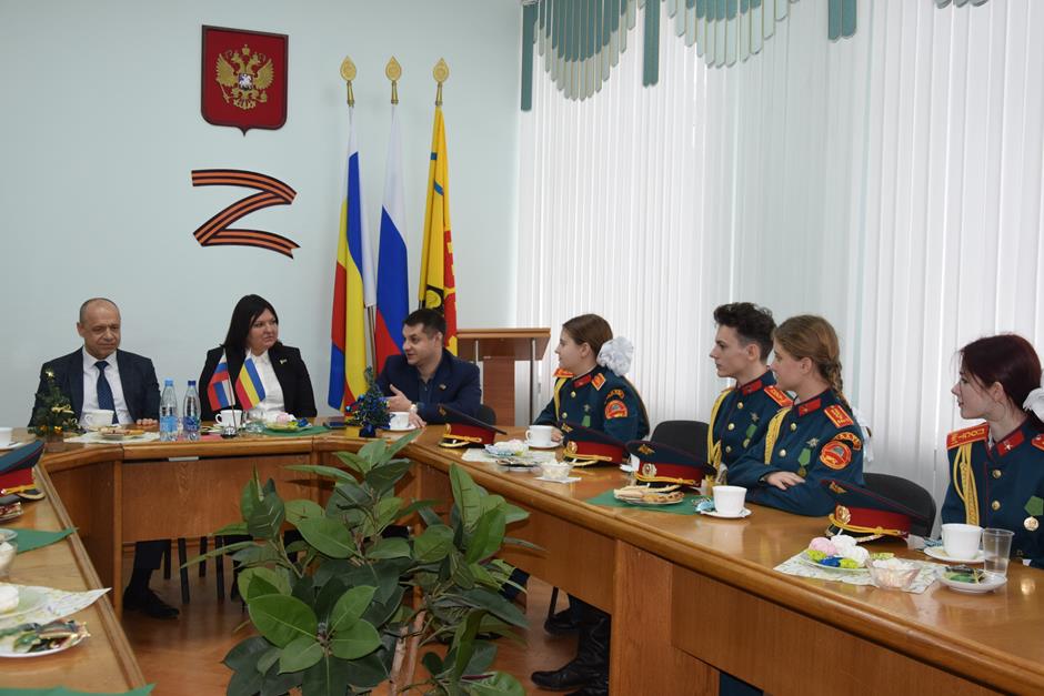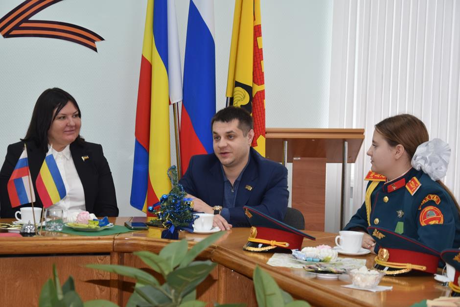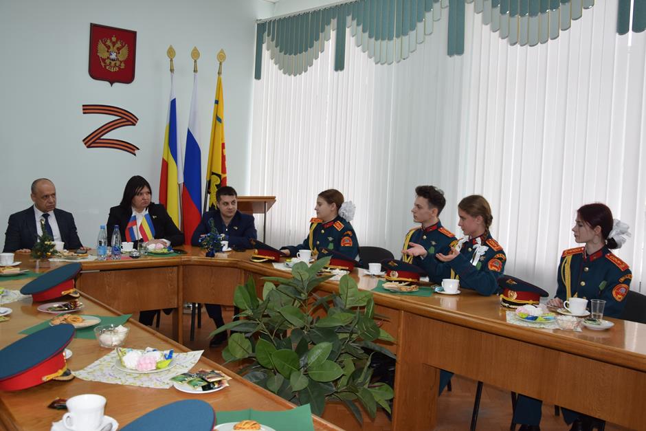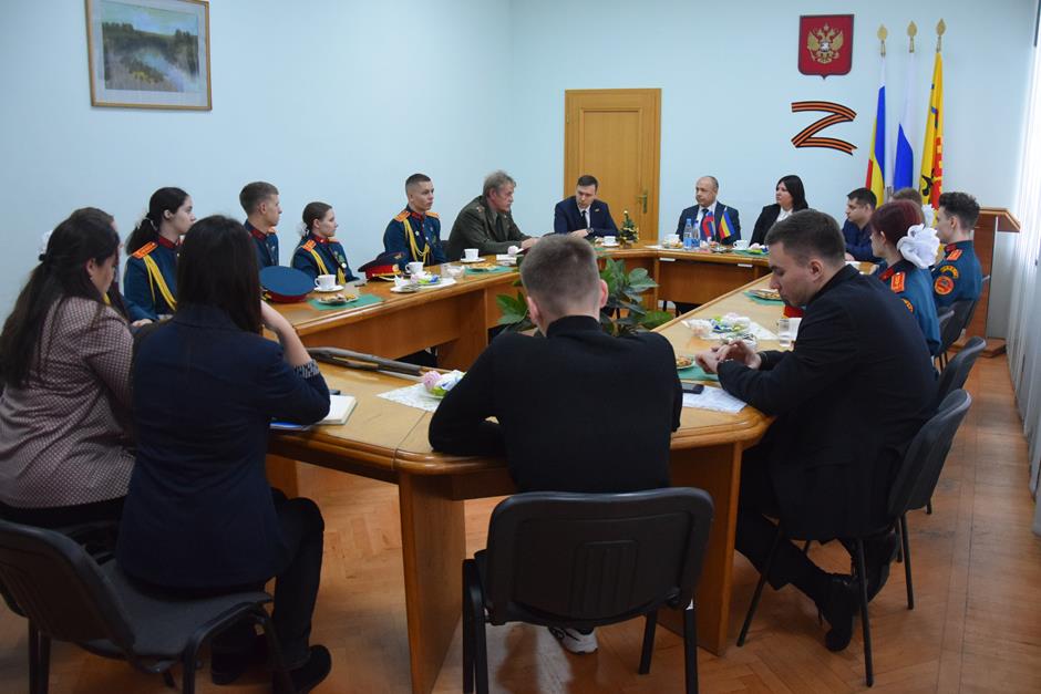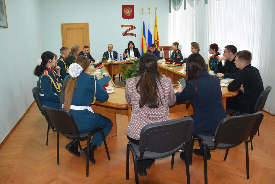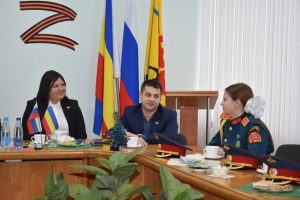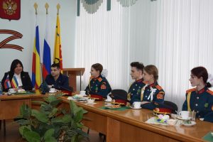 Встречу с юными патриотами и их наставником организовала донской парламентарий Ирина Жукова. В диалоге также приняли участие председатель городско Думы – глава города Шахты Константин Корнеев, депутаты Вадим Новоселов и Артем Долгопятов.
