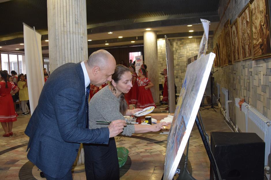 В холле городского Дворца культуры развернулись разнообразные выставочные площадки художественного и декоративно-прикладного искусства, мастерские, а в самом сердце – на импровизированной сцене – в формате открытого микрофона выступали со стихами, песнями и танцами солисты и коллективы из разных муниципалитетов Ростовской области.