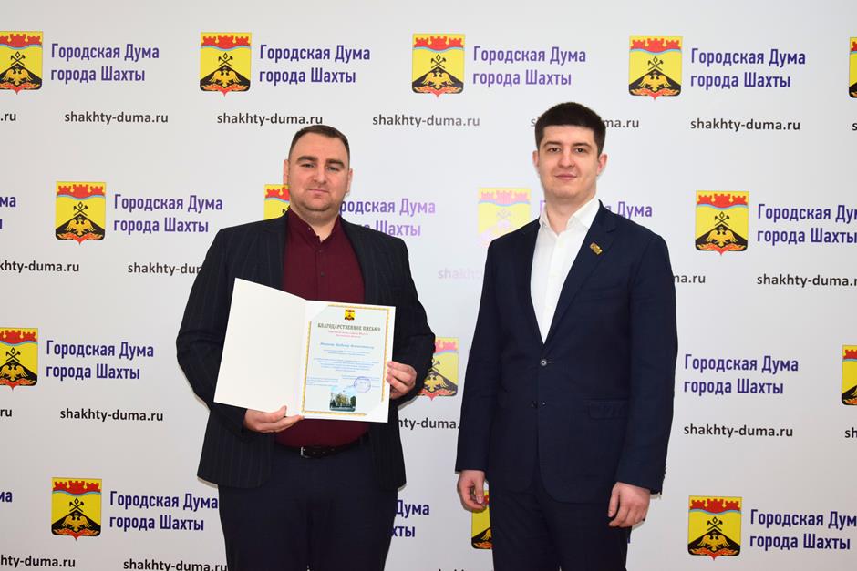 За ежедневный, добросовестный труд, направленный на реализацию полномочий органов местного самоуправления по организации электроснабжения, поощрения депутатского корпуса удостоены заместитель директора МКУ «Департамент городского хозяйства» Сергей Смирнов и начальник отдела электроэнергетики Администрации города Вадим Ишков. К поздравлениям также присоединился депутат городской Думы Владимир Андреянов, пожелав здоровья, новых планов и успехов в дальнейшей деятельности на благо жителей города Шахты.