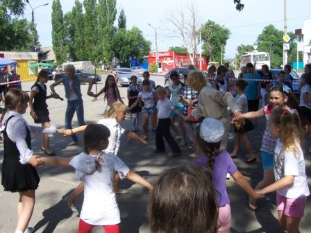 Детей с этим добрым, радостным праздником поздравила помощник председателя городской Думы Екатерина Смолякова. Маленькие «звездочки» Алина Архипенко, Марина Лагутина, Софья Доценко, Елизавета Рыданова были награждены Благодарственными письмами Молодежного парламента при городской Думе города Шахты – за активное участие в общественной жизни Дома Культуры им. Л. Красина и школы. Традиционно были разыграны призы за самые красочные и красивые рисунки мелками на асфальте.