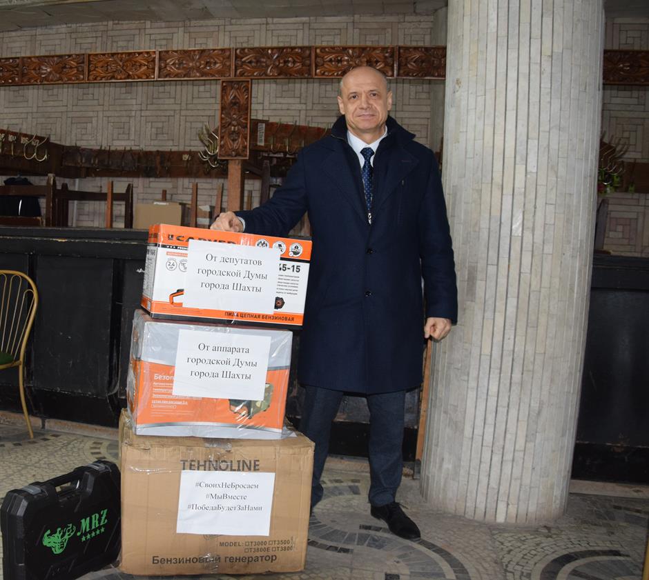 Автономный отопитель, генератор, бензопилу и другие инструменты, приобретенные для защитников депутатами и сотрудниками аппарата городской Думы, передал председатель городской Думы — глава города Шахты Константин Корнеев. Груз будет направлен разведчикам, саперам и бойцам зенитно-ракетных войск донецкого направления.