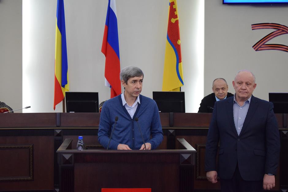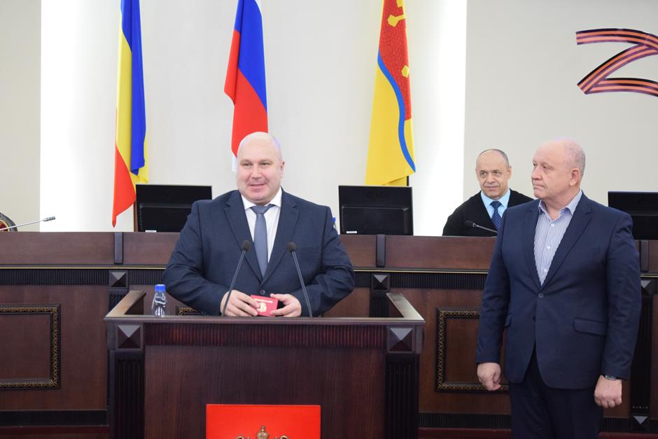 Открыла заседание процедура торжественного вручения председателем ОП Александром Скориковым удостоверений вновь избранным членам Общественной палаты города Шахты пятого созыва: заместителю председателя Союза ветеранов СВО Евгению Маликову и предпринимателю Виталию Будровскому.