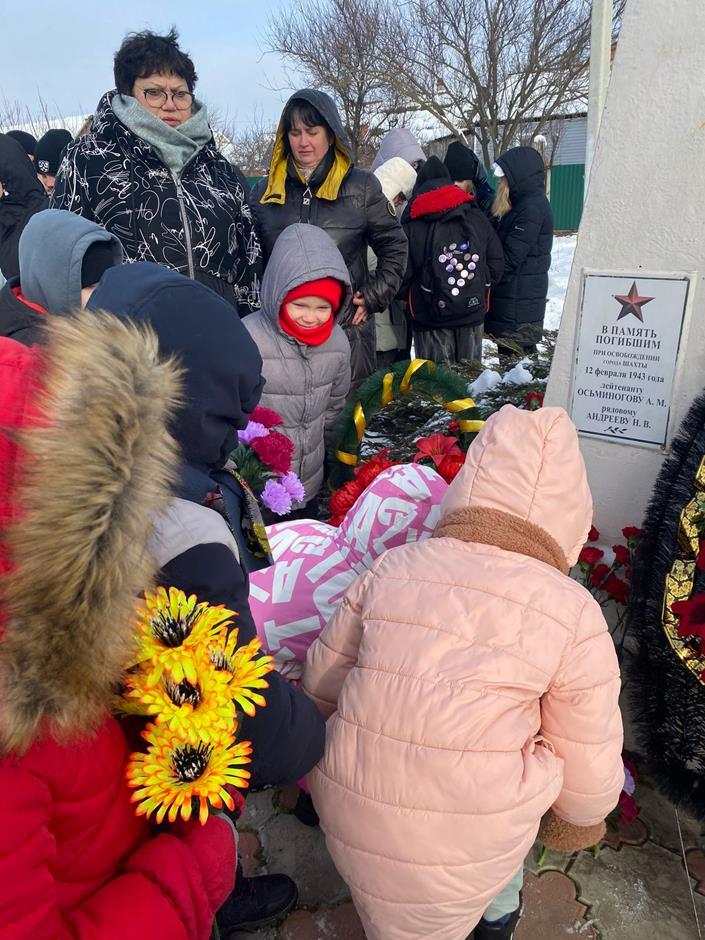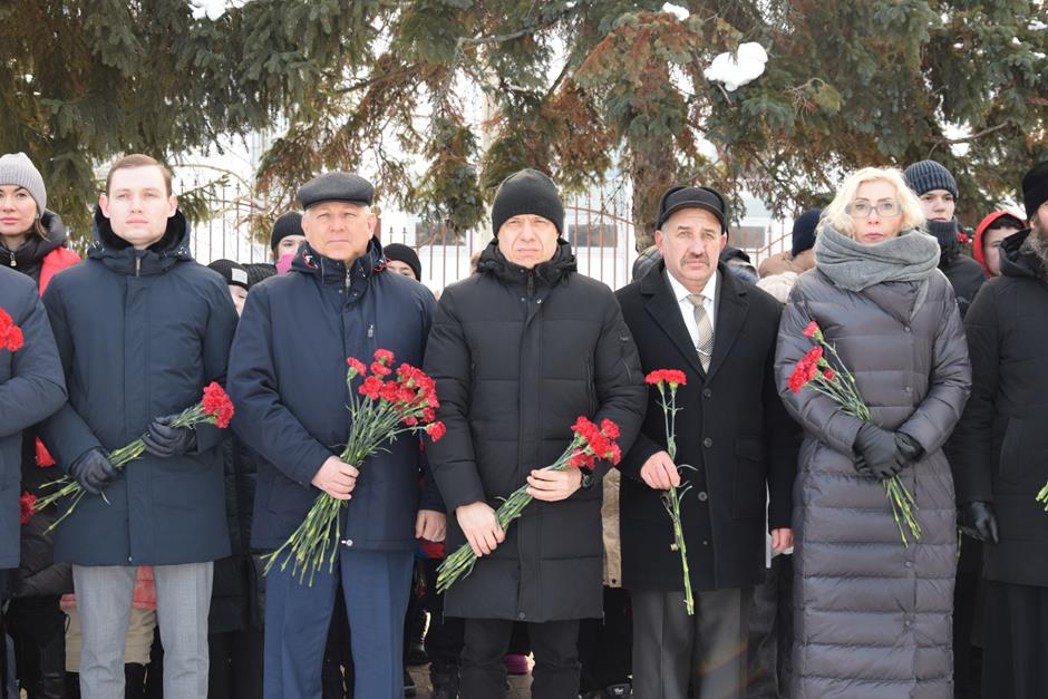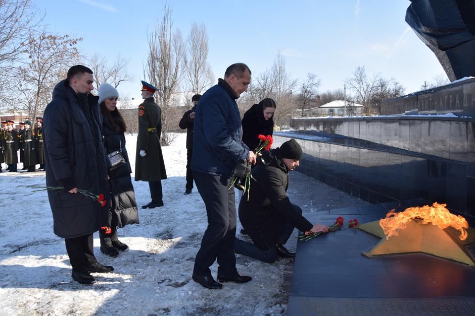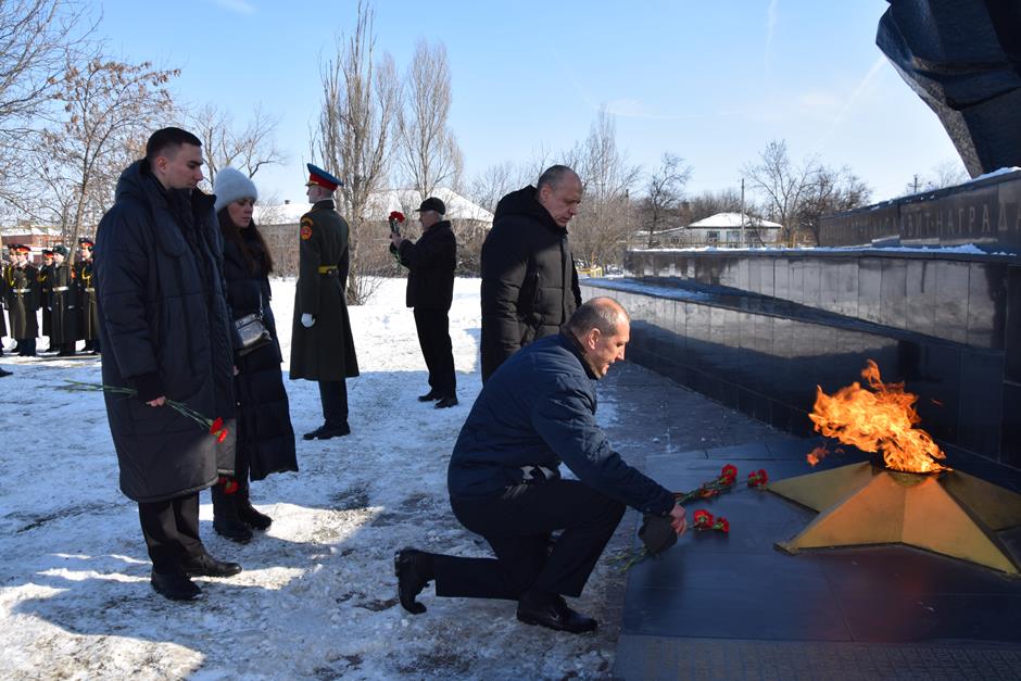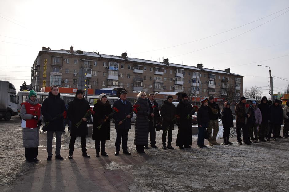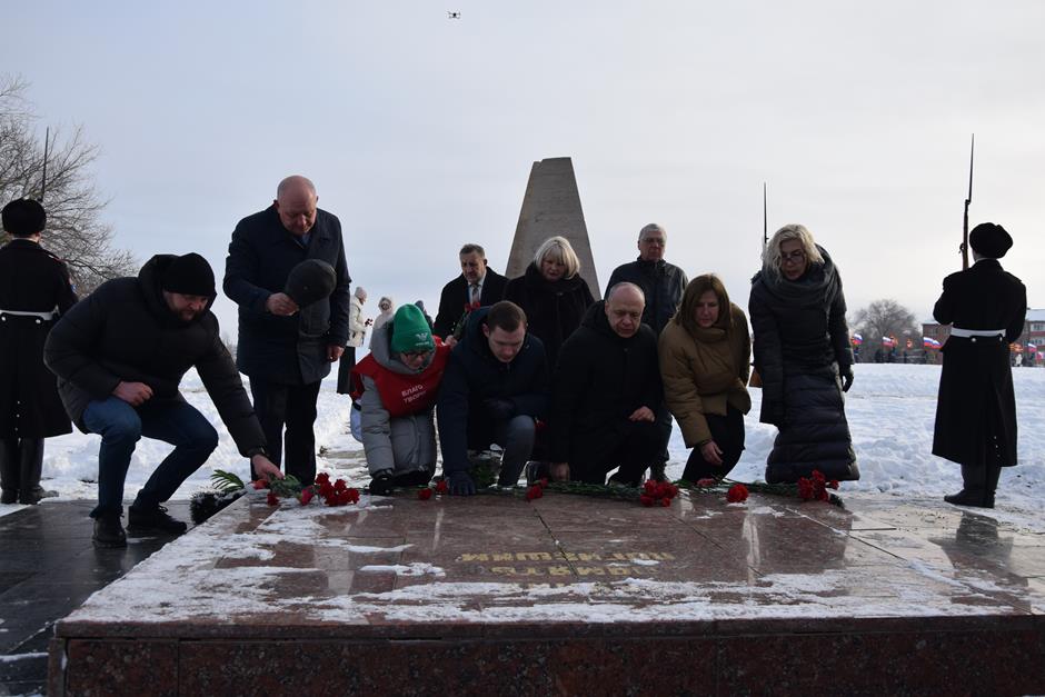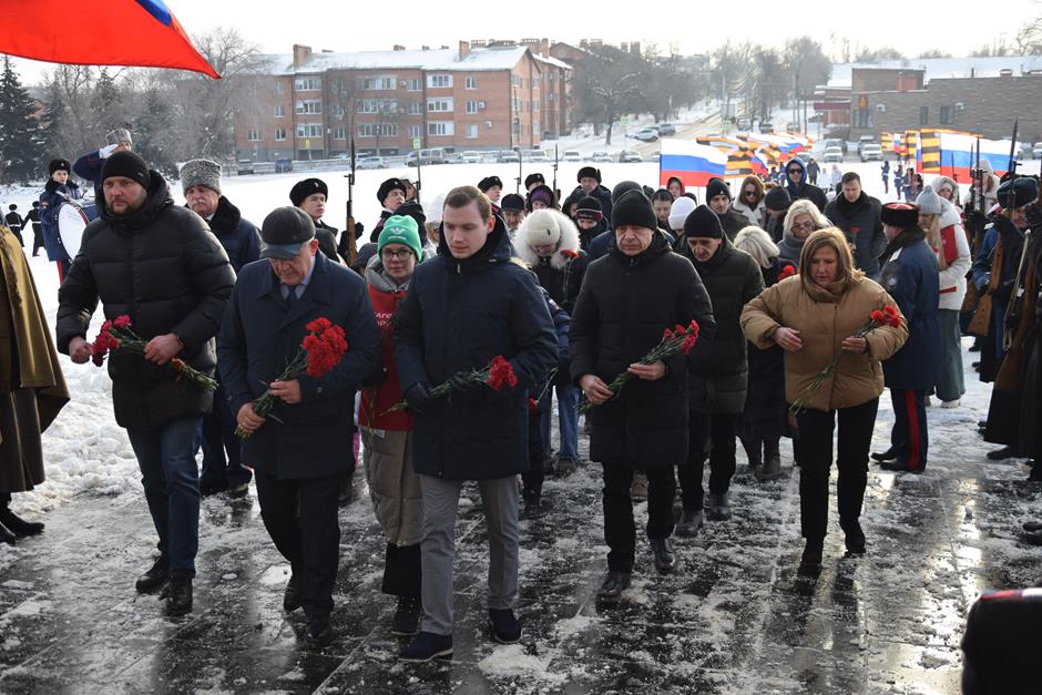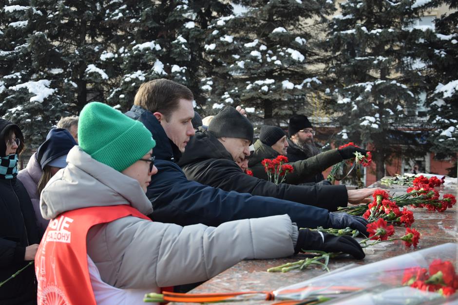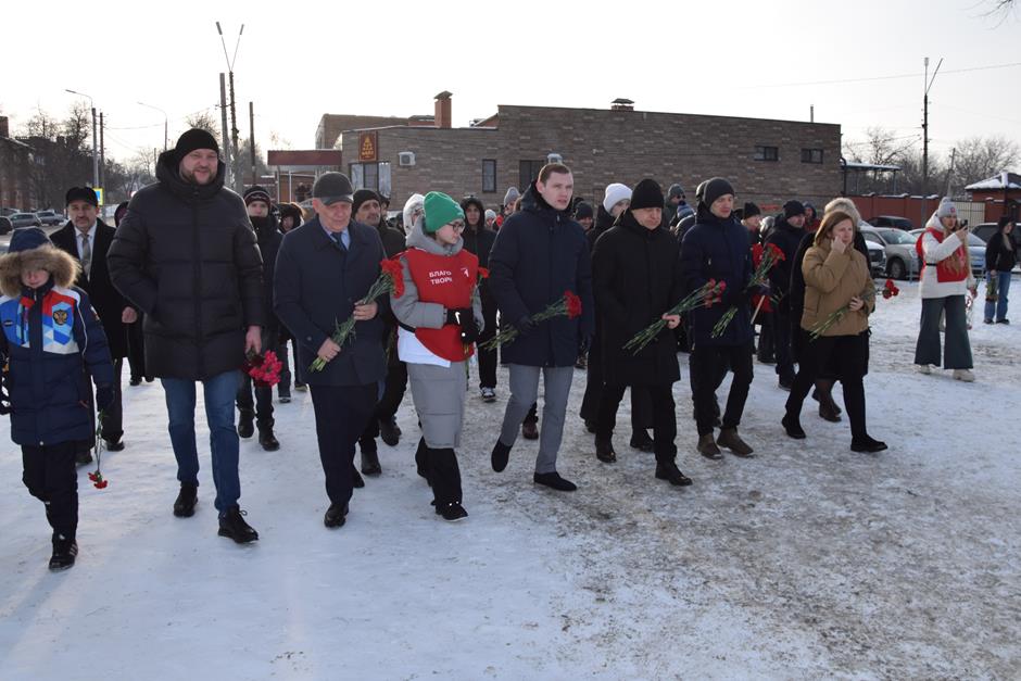 Отдать дань безграничного уважения подвигу героев пришли депутат ЗСРО Аркадий Горцевской, председатель городской Думы Константин Корнеев, исполняющий обязанности главы Администрации Владимир Петров, заместитель главы Администрации Светлана Морозова, председатель Контрольно-счетной палаты города Шахты Галина Аверкина, председатель Общественной палаты Александр Скориков, депутаты городской Думы Вадим Новоселов, Ирина Левашова, Александр Петин, благочинный приходов Александровск-Грушевского округа Александр Теличкин, члены Молодежного парламента и «Движения Первых», школьники, кадеты и горожане. Память погибших почтили минутой молчания.