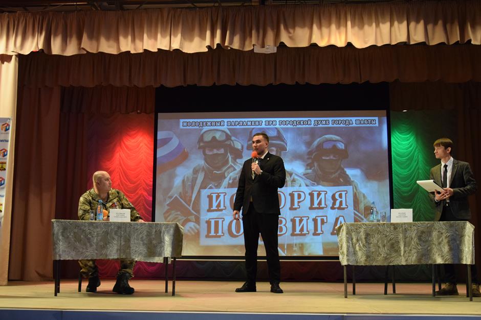 В центре проекта «История подвига» — наши Герои-защитники. Это открытый диалог между подрастающим поколением и участниками СВО, организованный Молодежным парламентом при городской Думе города Шахты.