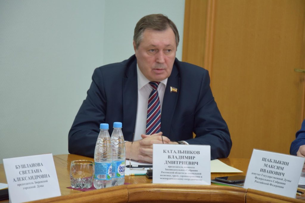 Перед собравшимися выступил депутат трёх созывов Государственной Думы, а ныне депутат ЗС РО Владимир Катальников. Он рассказал о том, что 154 избирательный округ и входящие в него территории являются глубокими реципиентами, то есть дотируемыми территориями, оттого и наши проблемы, в том числе дорожные, коммунальные — несопоставимы с проблемами не только таких городов, как Ростов-на-Дону, но и таких как Таганрог. Закон о приоритетном развитии шахтёрских территорий прекратил своё действие в 2010 году, и с тех пор проблемы городов и посёлков Восточного Донбасса ушли из основной повестки области. А наблюдать это можно даже в таком показателе, как подушевое финансирование территории. В городе Ростове это 24 тыс.рублей на человека в год, в Таганроге — 9 тыс.руб, в Шахтах — 4,5 тыс.рублей. Дороги с твёрдым покрытием в Ростове составляют около 90%, а в Шахтах — 23%. Поэтому стоит только свернуть с дороги даже в центре города, как сразу попадаешь на кочки и ямы грунтовых дорог. Остро стоит в бывших шахтёрских городах и посёлках вопрос занятости населения, что тоже является следствием развала угольной промышленности, ведь с учётом мультипликатора без работы остались 112 тысяч человек. И даже спустя годы скрытая безработица остаётся высокой. Поэтому продвигаться вперёд и развивать округ надо сообща всем ветвям власти, исполнительной и законодательной, вместе отстаивать интересы наших избирателей!