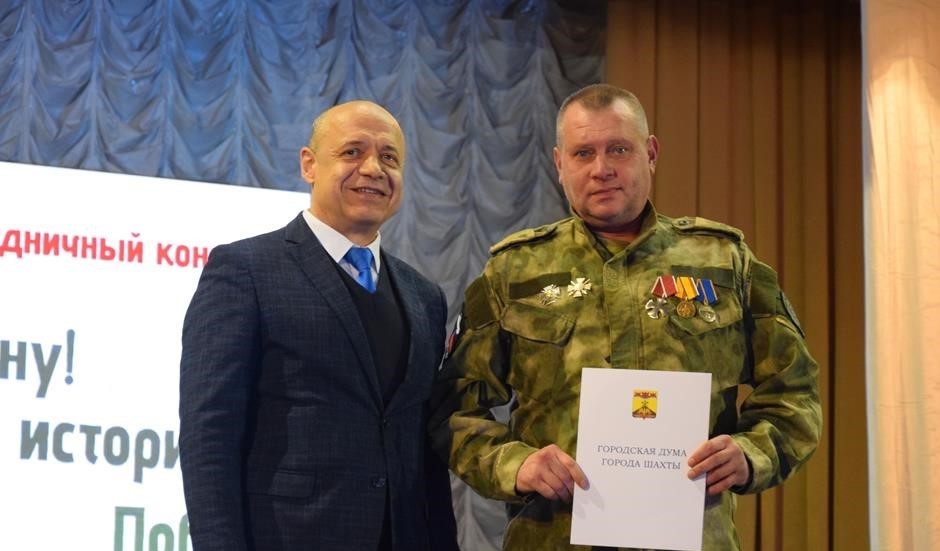 С благодарностью к главным героям праздника – за доблесть, мужество, верность долгу, любовь и преданность Родине – обратился председатель городской Думы города Шахты Константин Корнеев. Подчеркнув в своем выступлении важность сохранения исторической памяти, преемственности славных традиций российского воинства, он выразил признательность защитникам разных поколений: ветеранам, остановившим в 1945-ом фашизм, воинам-интернационалистам, участникам локальных конфликтам, бойцам СВО, отстаивающим суверенитет, независимость и будущее страны сегодня.