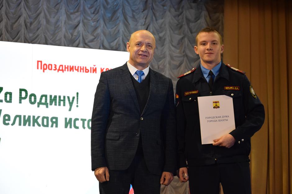 — Иван Чепурка – кадет государственного бюджетного общеобразовательного учреждения Ростовской области «Шахтинский генерала Я.П. Бакланова казачий кадетский корпус» — за проявленные гражданственность и патриотизм, достигнутые успехи в учебе.