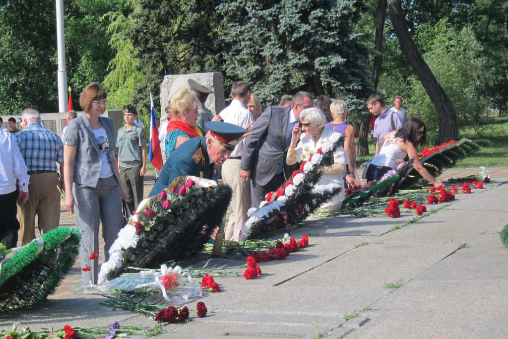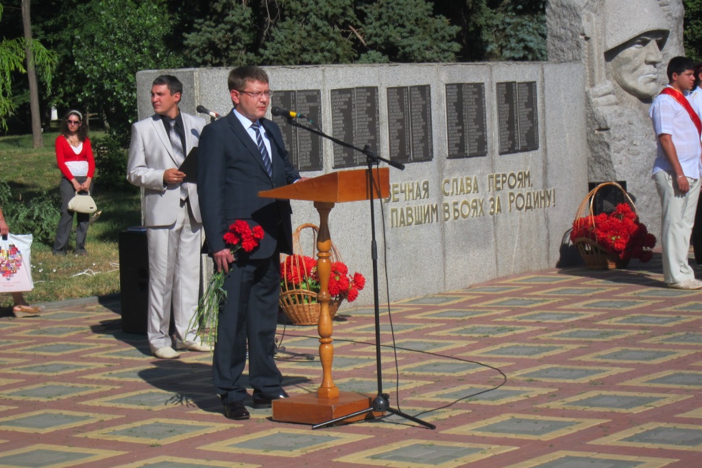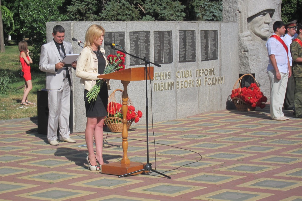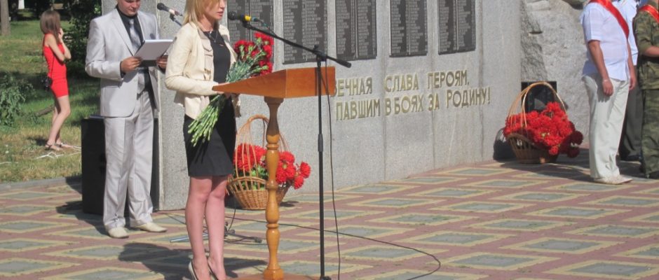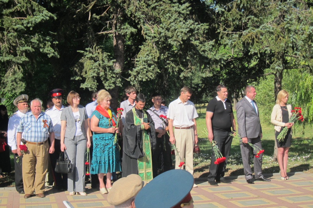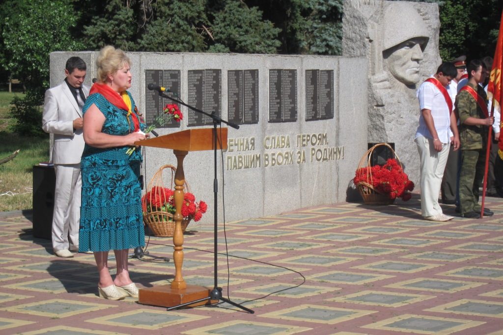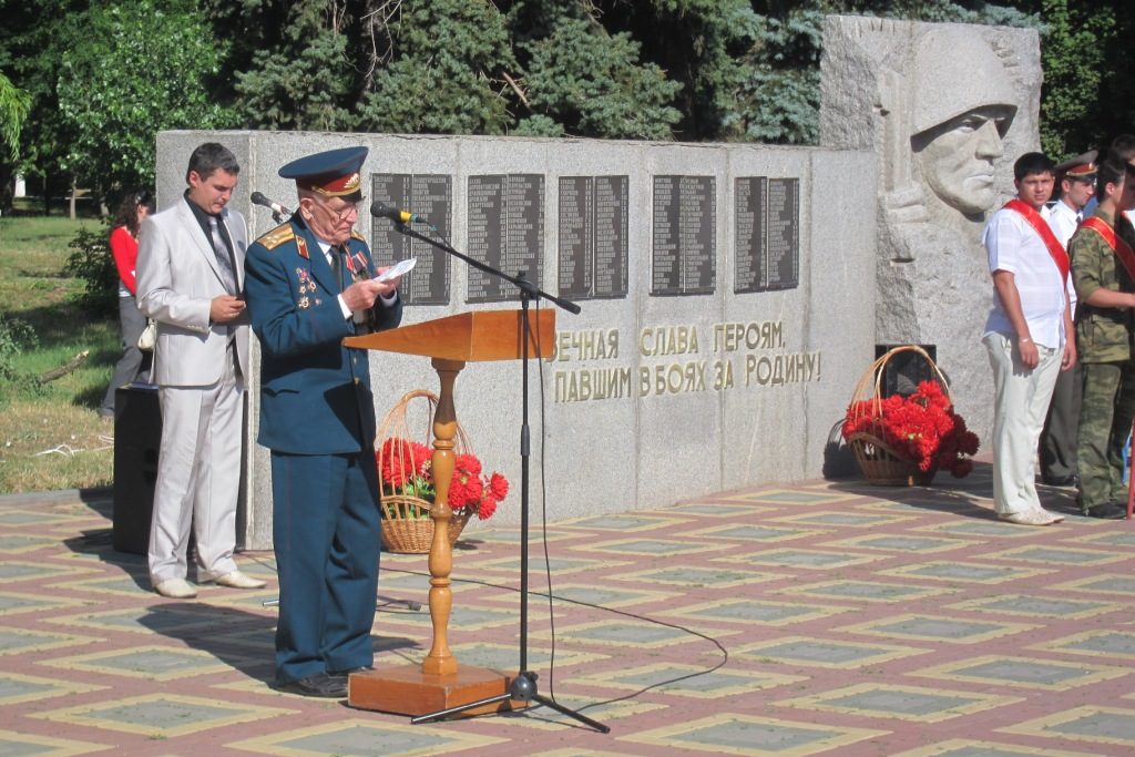 На митинге памяти у Вечного огня выступили заместитель главы Администрации А.Ю.Буянов, председатель комитета по местному самоуправлению городской Думы Е.П.Стенякина, ветеран В.И.Литвиненко, заместитель председатель Совета ветеранов А.Н. Загорулько, руководитель музейно-выставочного комплекса филиала ДГТУ О.А.Скосарева. Они выразили бесконечную благодарность нашему народу, который преодолел все невзгоды и вышел победителем в смертельной схватке с фашизмом, а потом ценой неимоверных усилий поднял из руин нашу Родину. Ведь каждый день Великой Отечественной являл миру пример героизма и самопожертвования советских солдат, мужества и стойкости тех, кто трудился в тылу, помогая ковать Победу.