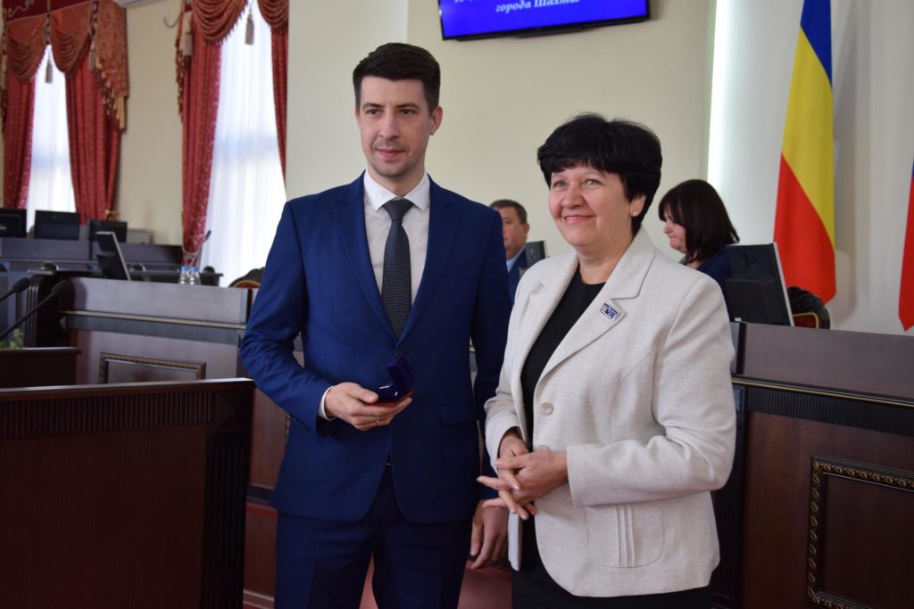 Также состоялась торжественная церемония вручения нагрудных знаков Контрольно-счетной палаты города Шахты аудиторам Контрольно-счетной палаты города Шахты. Церемонию провела председатель Контрольно-счётной палаты Галина Аверкина.
