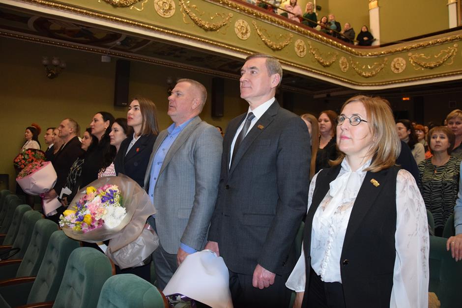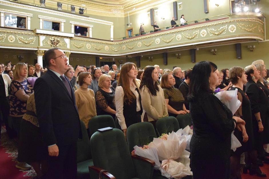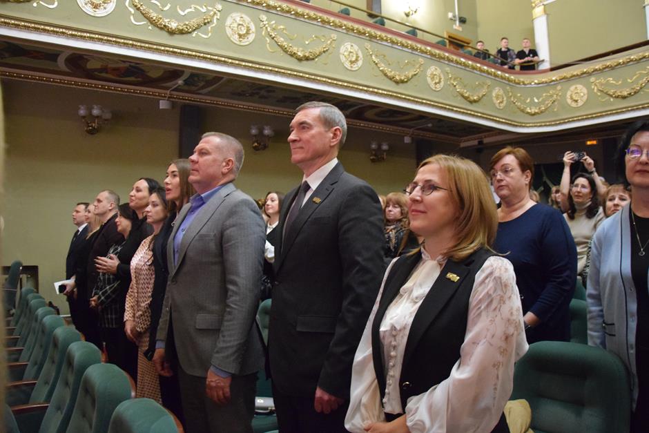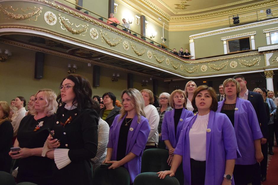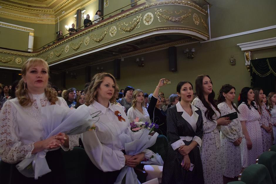 Торжественную церемонию подведения итогов в Шахтинском драматическом театре открыл хореографический коллектив школы №38, выступивший с танцевальной композицией «Прощание славянки». 2025 год объявлен Президентом России Владимиром Путиным Годом Защитника Отечества и 80-летия Победы в Великой Отечественной войне, именно поэтому основным лейтмотивом мероприятия стала история ратного подвига советского народа. Финалисты конкурса «Педагог года» присоединились к масштабной акции «Чтения Победы», в которых актеры театра и кино, музыканты, спортсмены и общественные деятели рассказывают о героизме защитников и простых граждан в военные годы. Шахтинские педагоги поведали истории своих коллег, которые самоотверженно спасали жизни солдат и детей.