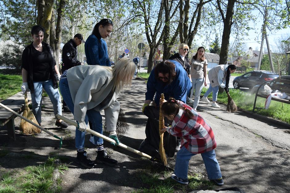Совместными усилиями убран мусор, сухие ветки и листья, очищена прилотковая зона.