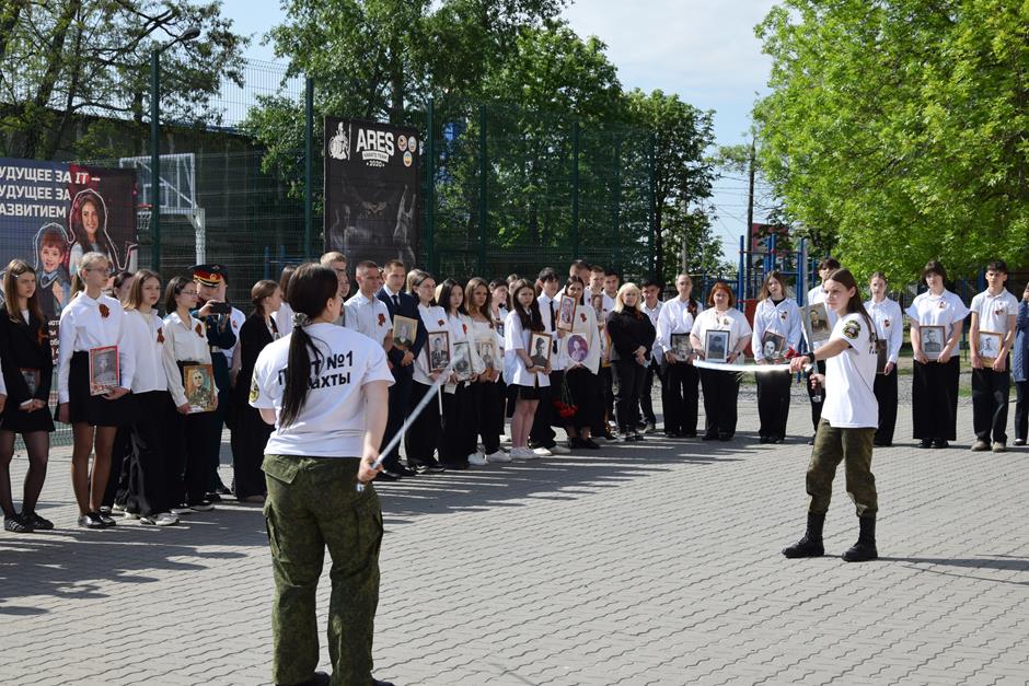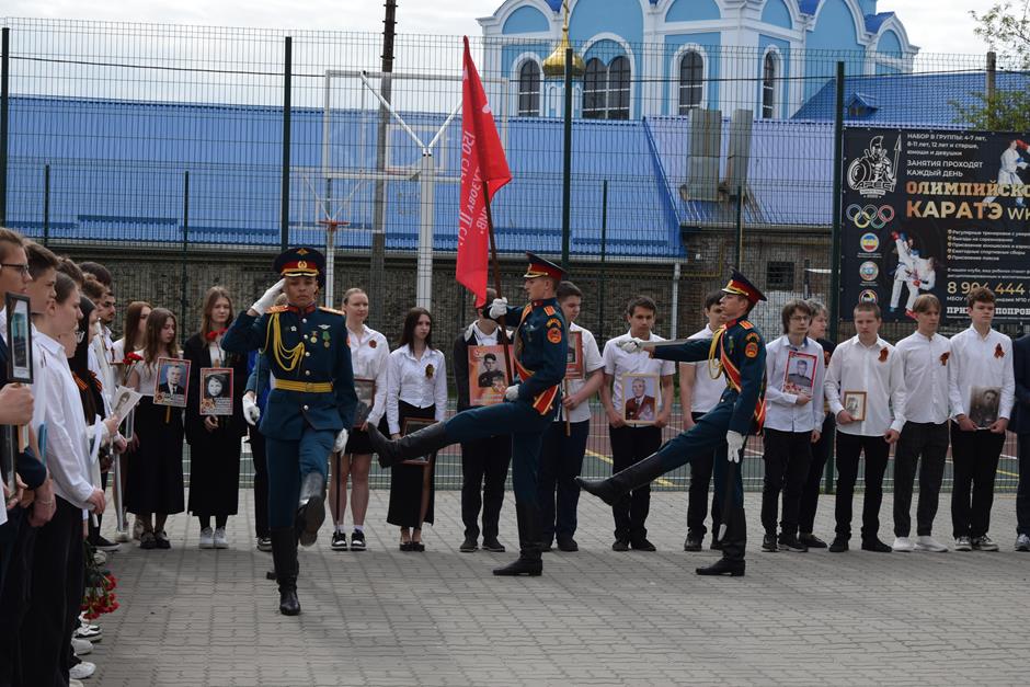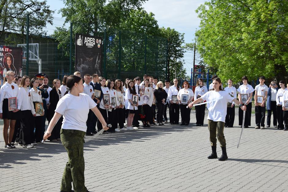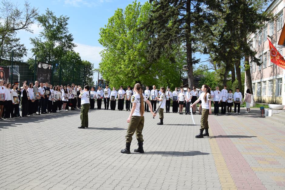 С патриотическими номерами выступили ученики образовательного учреждения, а воспитанники «Поста №1» продемонстрировали гостям мастерство фланкировки. В знак глубокого уважения и признательности за великий подвиг наших легендарных предков к памятнику павшим в годы Великой Отечественной войны участники мероприятия возложили цветы.