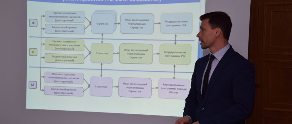 По первому вопросу — «О внесении изменений в решение городской Думы города Шахты «Об утверждении «Стратегии социально-экономического развития г.Шахты на период до 2020 года «ДОНБАСС NEXT» и второму вопросу «Информация о ходе разработки документов стратегического планирования социально-экономического развития муниципального образования «Город Шахты» директор департамента экономики О.В.Горшков подготовил одно выступление, так как заявленные темы, по его мнению, желательно рассматривать одновременно.
