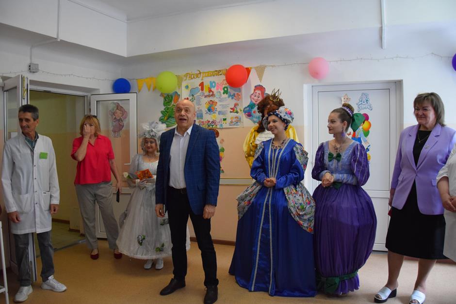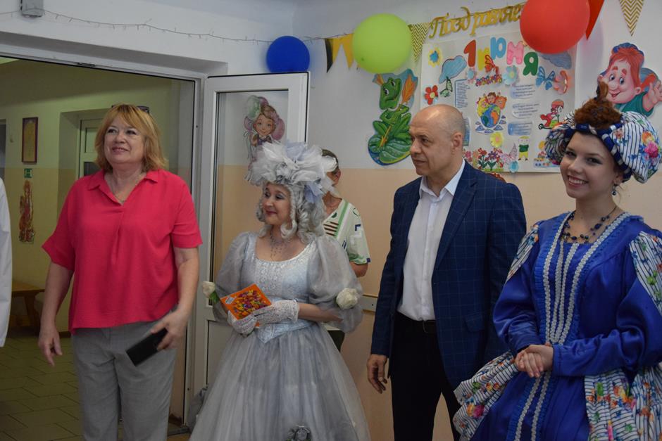 Ребят, получающих медицинскую помощь в стенах ДГБ, 1 июня навестили Глава города Шахты Людмила Овчиева, председатель городской Думы города Шахты Константин Корнеев, заместитель главы Администрации Светлана Морозова, руководитель информационного отдела Шахтинской епархии, иерей Даниил Зырянов, главный врач ГБУ РО «ДГБ» Светлана Казакова. Маленьким пациентам пожелали скорейшего выздоровления, активного, веселого, запоминающегося, счастливого лета и вручили подарки.