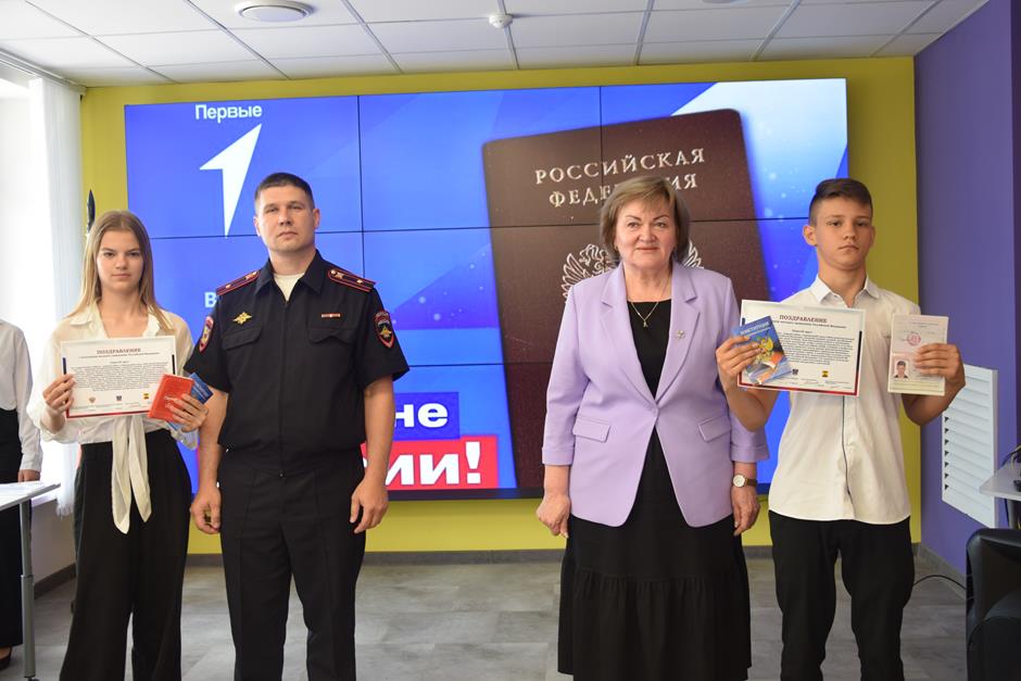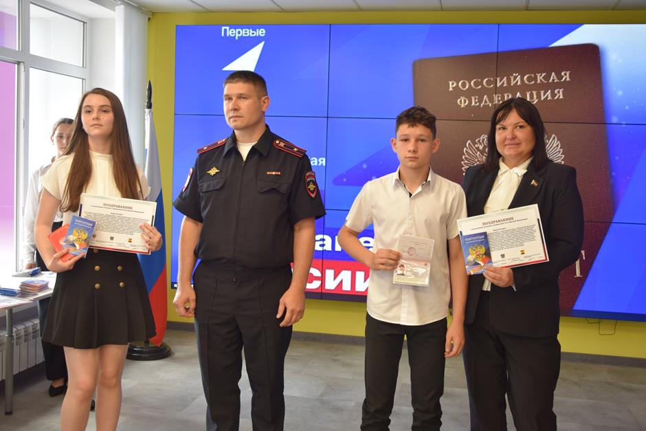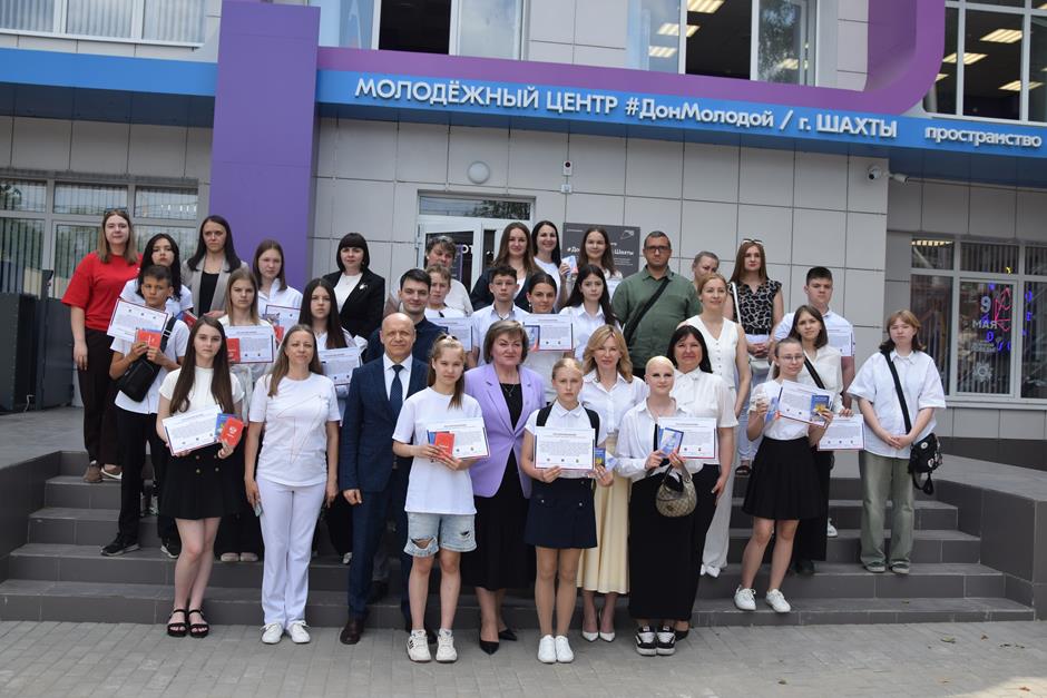В Шахтах состоялась торжественное вручение паспортов граждан Российской Федерации 14-летним горожанам. С достоинством нести это высокое звание, чтить и уважать законы нашего государства, прилежно учиться, развиваться в выбранном деле, смело покорять новые вершины, всегда помня о том, что в их руках — будущее России, — желали юным шахтинцам на торжественной церемонии. В ней приняли участие депутат Государственной Думы Федерального собрания РФ 8 созыва Екатерина Стенякина, председатель комитета Законодательного Собрания Ростовской области по взаимодействию с общественными объединениями, молодежной политике, физической культуре, спорту и туризму Ирина Жукова, Глава города Шахты Людмила Овчиева, председатель городской Думы города Шахты Константин Корнеев, начальник отдела по вопросам миграции Управления МВД России по городу Шахты Евгений Кузнецов. Мероприятие состоялось в Многофункциональном молодежном центре Дон Молодой г. Шахты в рамках проекта «Движение Первых» «Мы – граждане России».