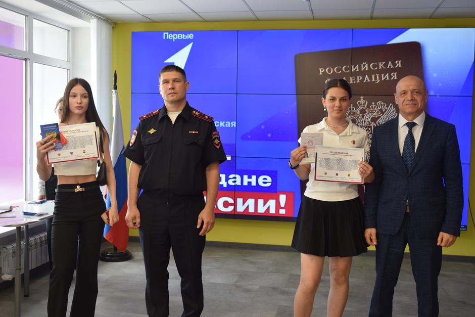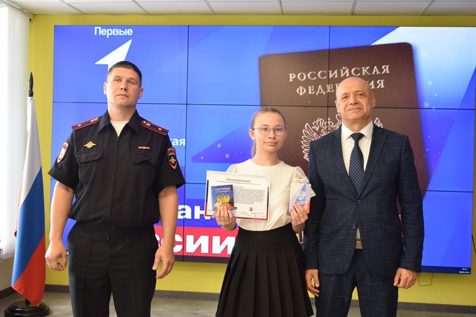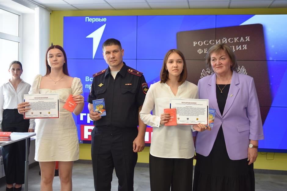 24 юных гражданина получили свой главный официальный документ сегодня. Эти ребята — лидеры и призеры спортивных соревнований и творческих конкурсов различного уровня, обладатели впечатляющих результатов в научно-исследовательской деятельности, активисты волонтерского движения и общественной деятельности. Оставаться такими же ответственными, патриотичными, целеустремленными, любить Родину и защищать ее интересы, равняться на достойные примеры, трудиться на благо любимого города и великой России, продолжать ее историю, укреплять ее достояние своими успехами – такими искренними словами их напутствовали на будущие победы и достижения.