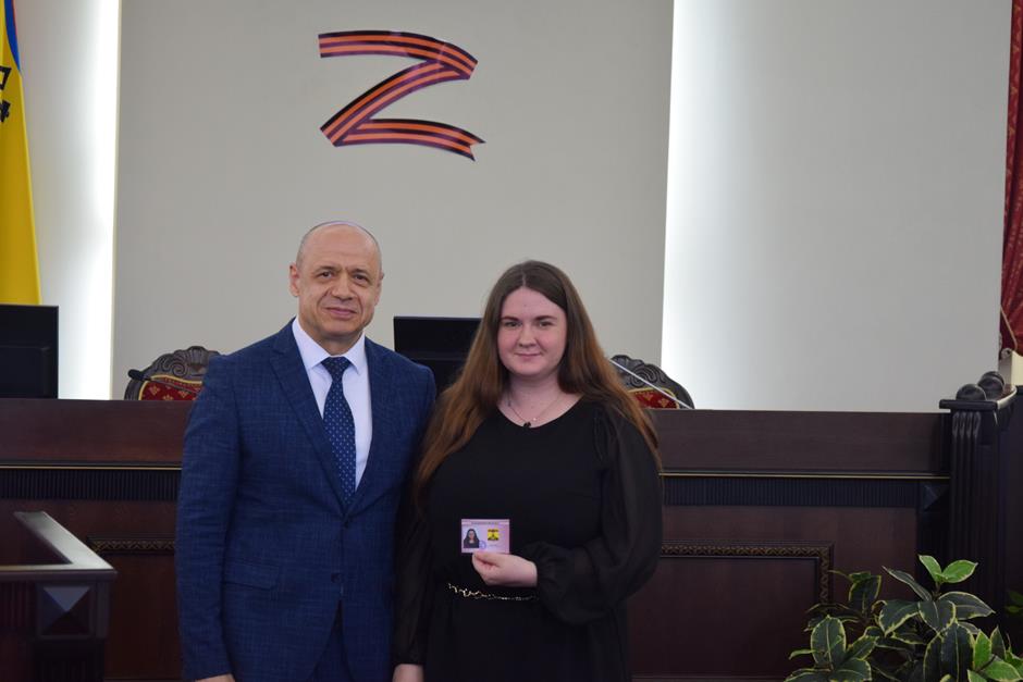 Продолжила заседание процедура вручения удостоверений депутатов Молодежного парламента десятого созыва при городской Думе города Шахты. В новый состав МП вошли: