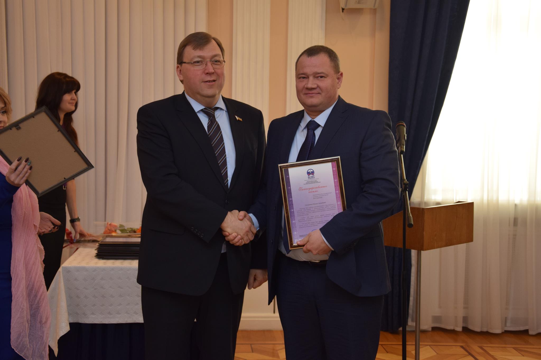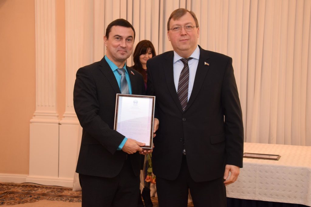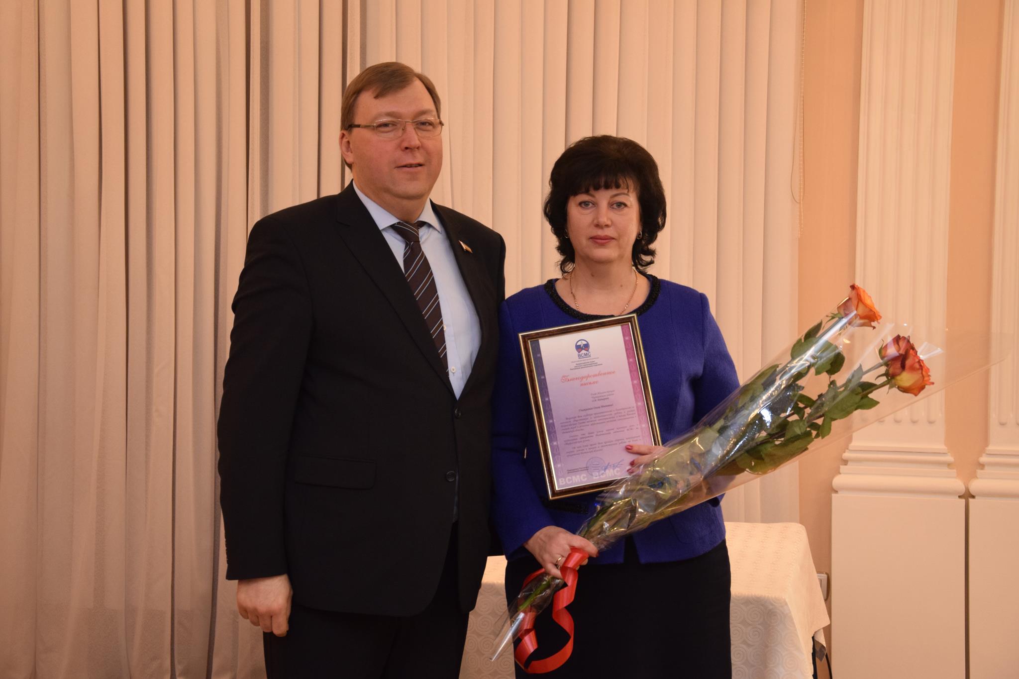 Александр Ищенко вручил ряд Благодарственных писем — за активную общественную и организационную работу в рамках ВСМС, а также за большой личный вклад в развитие местного самоуправления в РО. Среди награждённых — председатель городской Думы — глава города Шахты Ирина Жукова.