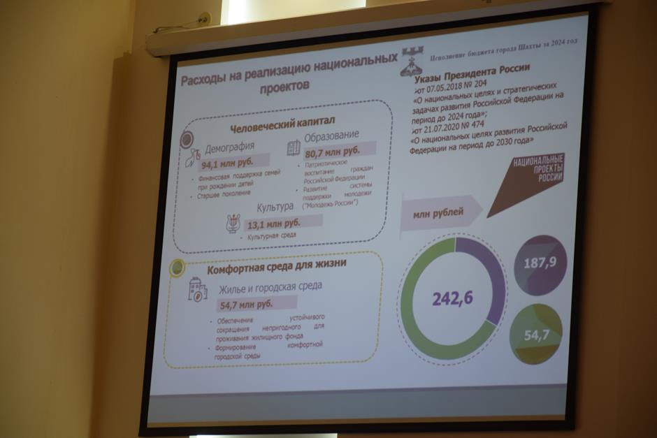 Бюджет города Шахты сформирован на основе двадцати муниципальных программ – на каждой Сергей Васильев остановился подробнее, в целом же на их реализацию направлено 10 005,2 млн рублей (96,7% от всех расходов): в том числе на строительство и капремонт объектов – 2 861,9 млн рублей, на дорожное хозяйство – 3 928 млн рублей. На финансовое обеспечение социальных программ потрачено 68,2% средств. Конкретизированы объекты и суммы по нацпроектам «Демография», «Образование», «Культура», «Безопасные качественные дороги», «Жилье и городская среда» (всего 242,6 млн рублей).