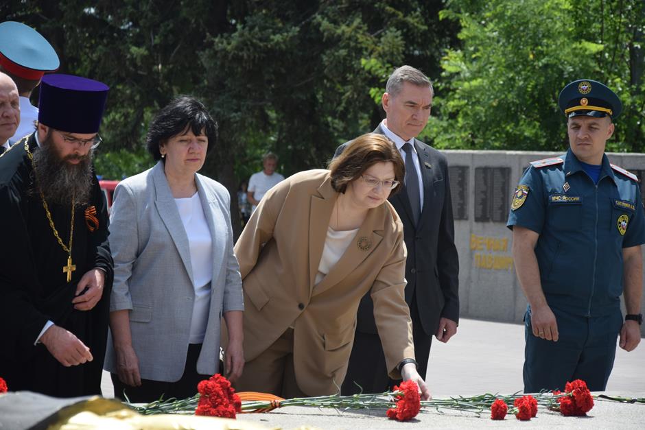 Почтить память не вернувшихся с полей сражений и жертв борьбы с фашизмом на мемориальном комплексе в Александровском парке пришли Глава города Шахты Людмила Овчиева, председатель комитета ЗСРО по взаимодействию с общественными объединениями, молодежной политике, спорту и туризму Ирина Жукова, депутат донского парламента Аркадий Горцевской, председатель городской Думы города Шахты Константин Корнеев, председатель Контрольно-счетной палаты города Галина Аверкина, заместители главы Администрации, представители духовенства, молодежи, общественности и неравнодушные горожане.