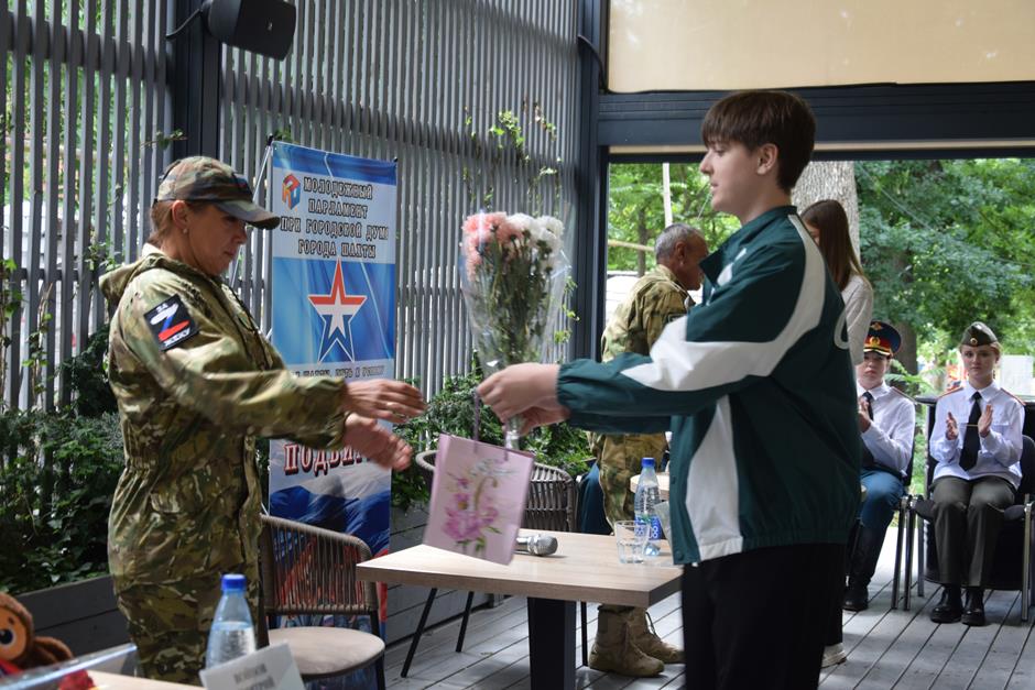 Чем могут помочь бойцам в зоне специальной военной операции, и что требуется воинам в первую очередь? На эти вопросы ответили Наталья Евтушенко и Сергей Бончук. Свой вклад в победу можно внести любым способом: плетением маскировочных сетей, изготовлением блиндажных свечей, участием в гуманитарных сборах. Особенно солдаты ценят письма и обереги, которые служат неразрывной связью с домом и наглядным напоминанием: их ждут, любят и верят в скорейшую, неминуемую победу. Слова благодарности и символичные подарки от школьников передала участникам диалога директор школы №27 Татьяна Гарковец. От Молодежного парламента герои-современники получили Благодарственные письма.