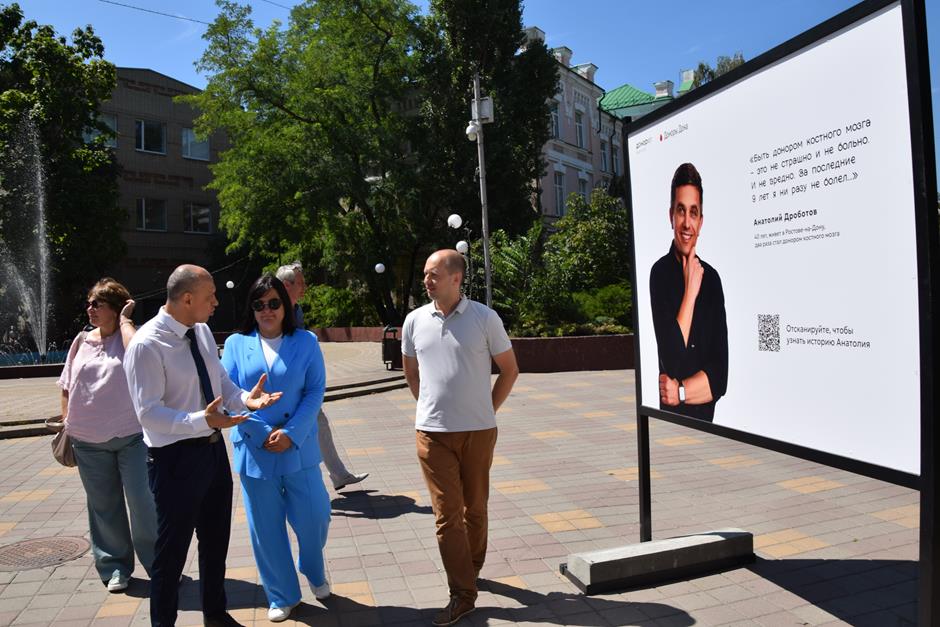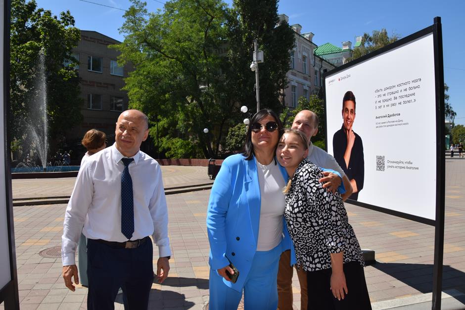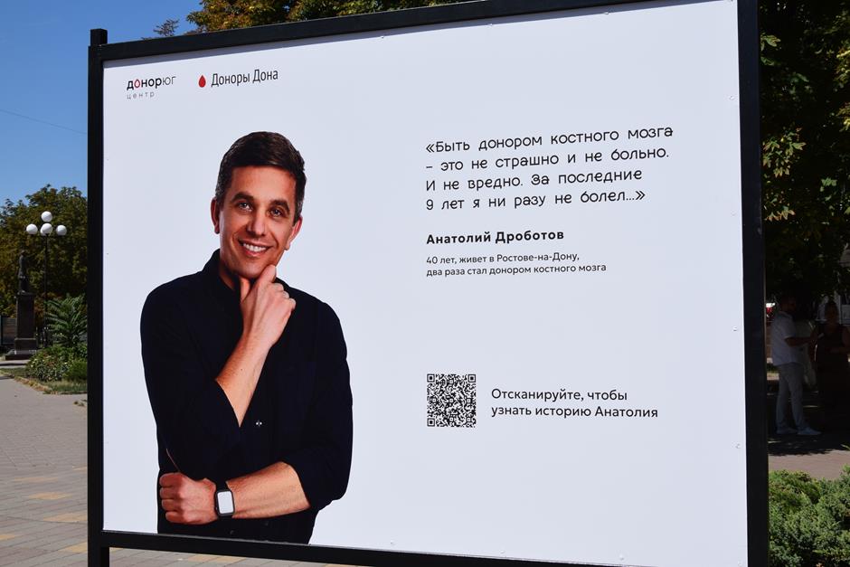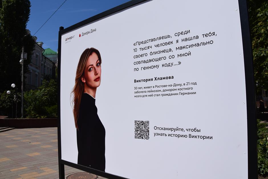 В фотопроекте участвуют 9 героев: доноры крови и доноры костного мозга, а также люди, которые благодаря их помощи смогли побороть тяжелые болезни. Каждая фотография сопровождается qr-кодом, ведущим на их вдохновляющие истории на лендинге Донорство-на-Дону.рф. С одним из участников выставки – шахтинкой Еленой Загорулько на открытии мероприятия земляки смогли пообщаться лично.
