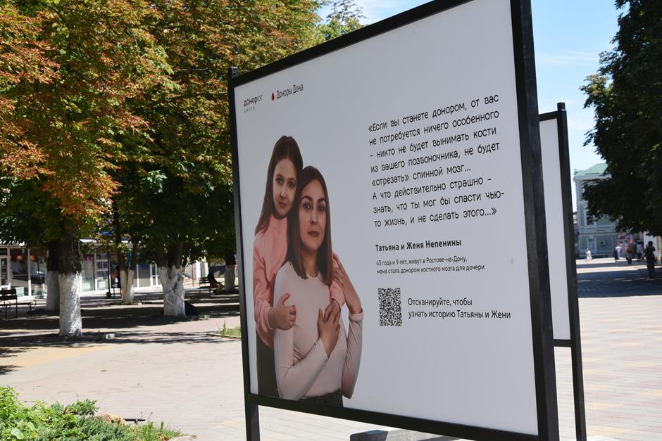 В Шахтах до 6 августа работает фотовыставка «Донорство-на-Дону». Она развернулась на улице Шевченко — перед входом в Александровский парк.