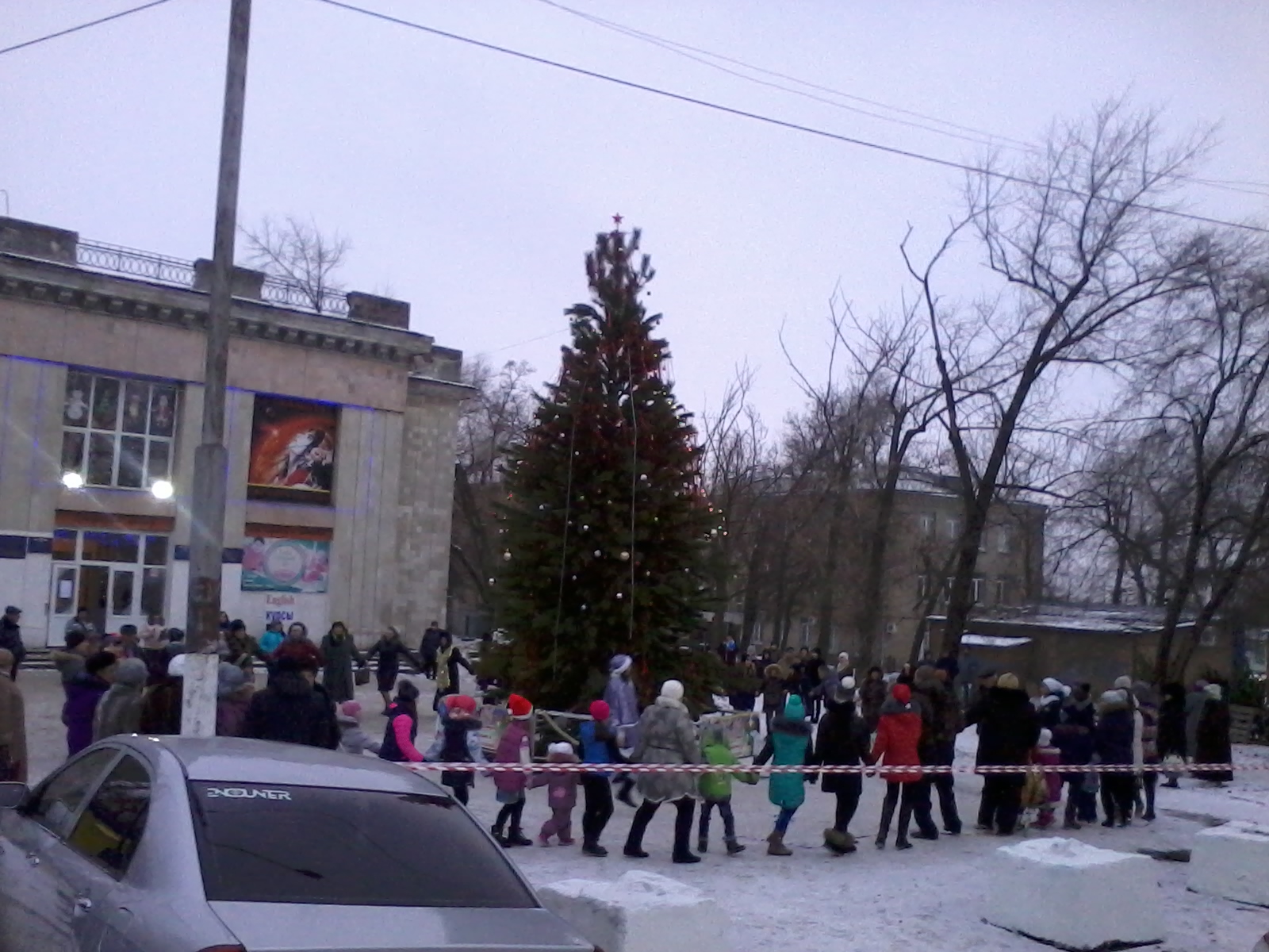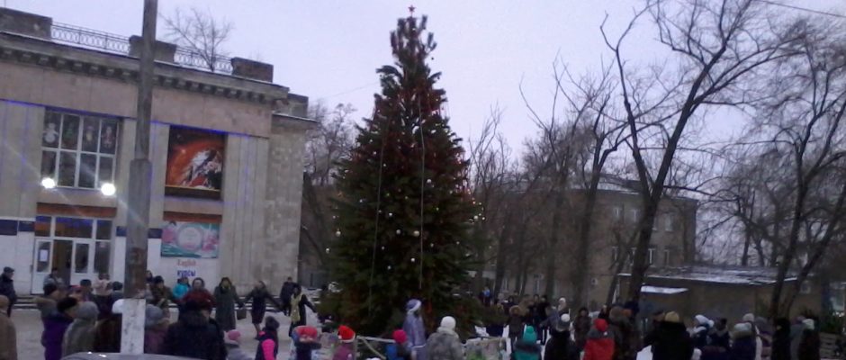 Новогодние огни зажглись на ёлке возле клуба «Планета»