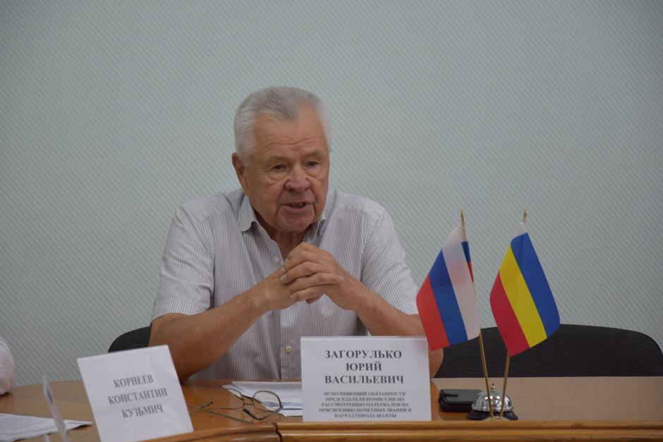 Открыл рабочую повестку вопрос о выборах председателя комиссии по рассмотрению материалов на присвоение почетных званий и наград города Шахты – им стал Юрий Загорулько, исполнявший обязанности председателя комиссии. На должность заместителя единогласным решением избран Федор Хлебников (вопрос №2).