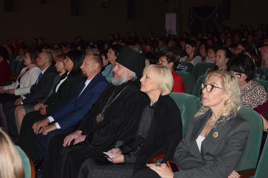 Искренние слова благодарности за преданность призванию, достойное воспитание подрастающего поколения на примерах высокого патриотизма, трудолюбия, нравственности адресовали педагогам Глава города Шахты Людмила Овчиева, депутат Государственной Думы Федерального Собрания РФ Екатерина Стенякина, епископ Шахтинский и Миллеровский Симон, председатель комитета Законодательного Собрания Ростовской области по взаимодействию с общественными объединениями, молодежной политике, физической культуре, спорту и туризму Ирина Жукова, председатель городской Думы Константин Корнеев. Обращаясь к работникам образования, они отметили: быть учителем — значит постоянно развиваться и совершенствовать свои навыки, оставаться ярким примером и мудрым наставником для молодежи.