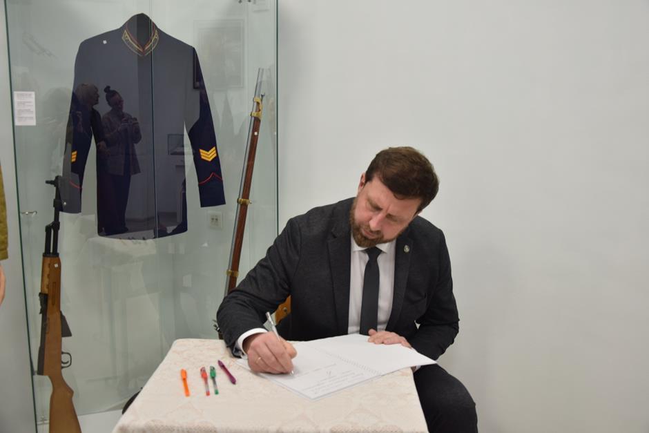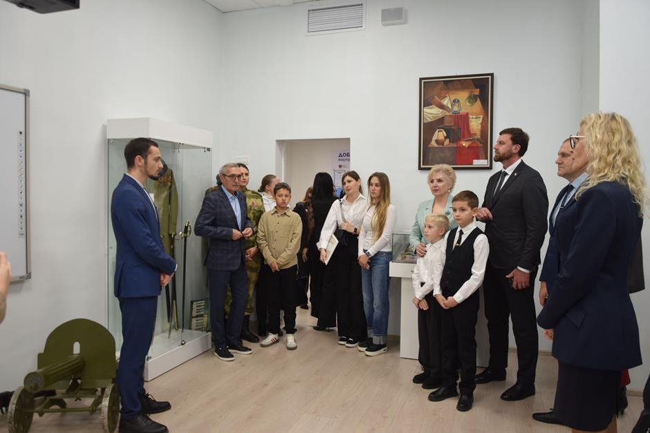 В фонд музея, насчитывающий 80 экспонатов, Максим Голодов передал планшет значков о Волгограде — городе-Герое, получившем это звание за героическую оборону в годы Великой Отечественной войны. Экскурсию по уникальному образовательному пространству, которое будет служить не только местом хранения исторических и культурных артефактов, но и мощным инструментом воспитания и образования учеников, провел руководитель музея Вадим Астапов.
