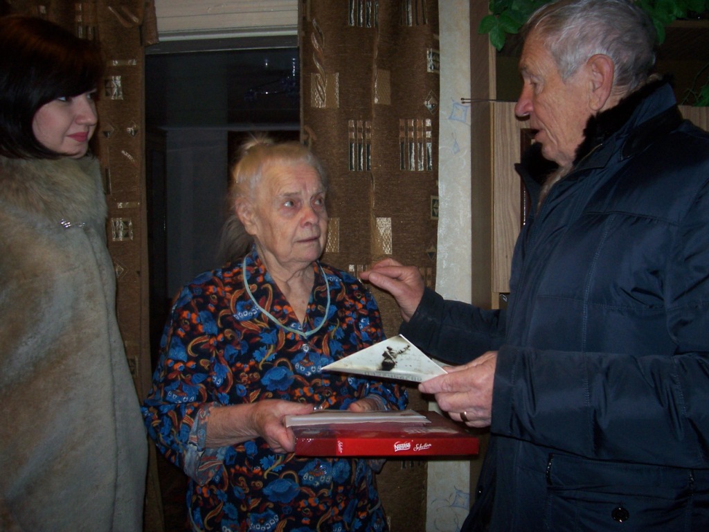 Помощник председателя городской Думы Ирины Жуковой Екатерина Смолякова для поздравления дорогих юбилярш посёлка привлекла активистов посёлка, самых неравнодушных людей – Н.И.Лящеву и председателя Совета ветеранов Красина В.С.Рымшу. Вот так вместе они и отправились вручать ветеранам В.П.Барноусовой и А.Р.Кундрюковой поздравления с Днём рождения от председателя городской Думы, Губернатора Ростовской области и самого Президента! Уважаемым и достойным женщинам-ветеранам Президент пожелал здоровья и выразил благодарность за труд на благо Родины!