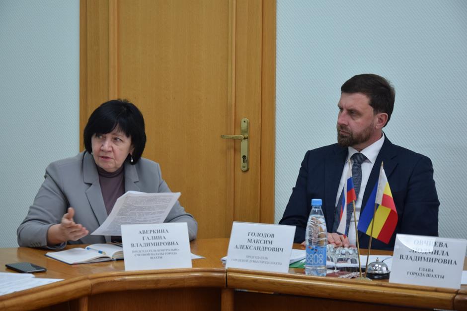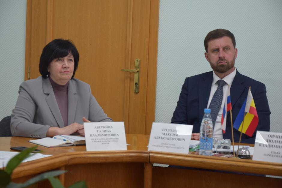 В заседании Совета городской Думы города Шахты приняли участие председатель городской Думы города Шахты Максим Голодов, председатель Контрольно-счетной палаты города Галина Аверкина, председатели комитетов Думы.