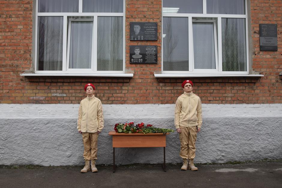 На фасаде учебного заведения были размещены памятные доски четырех выпускников – участников специальной военной операции, как символ глубокой благодарности сограждан за подвиг и мужество, проявленные в интересах Родины. Право открыть их предоставили семьям погибших.