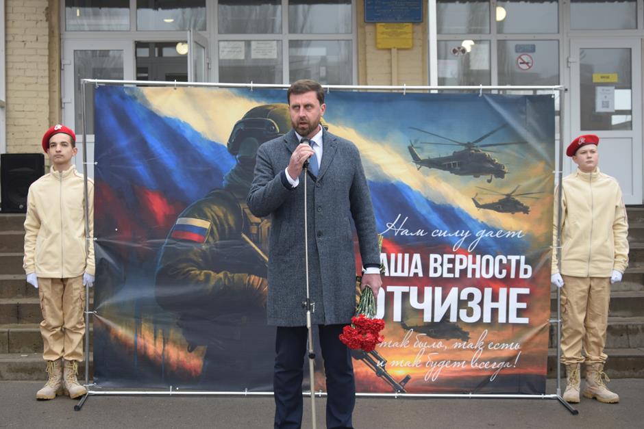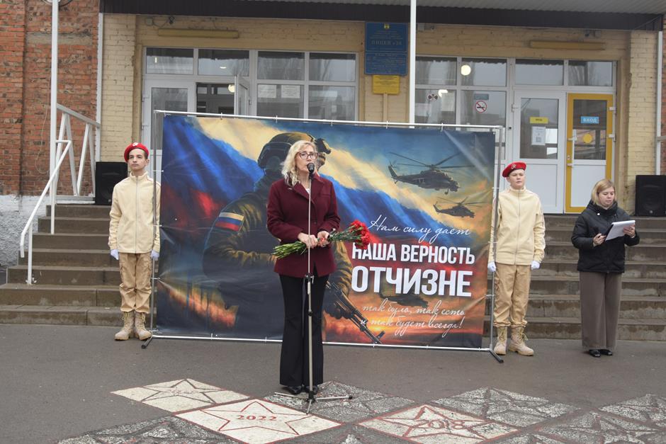 Мероприятие, посвященное увековечиванию памяти героев Отечества, отдавших свои жизни при выполнении воинского долга, состоялось в лицее №26. В нем приняли участие председатель городской Думы Максим Голодов, заместитель главы Администрации Светлана Морозова, депутат городской Думы Вадим Курдюк, председатель Общественной палаты города Шахты пятого созыва Александр Скориков, директор Департамента образования Нелли Володина, председатель городского Совета ветеранов Александр Пятаков, директор лицея №26 Зоя Харламова, школьники, учителя и родные бойцов.