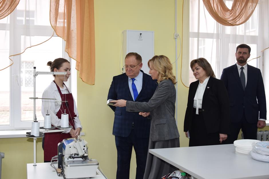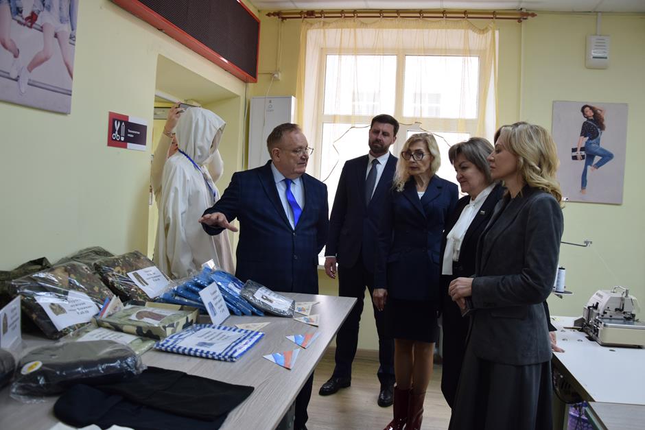 Директор Сергей Сударкин показал гостям в цехах, как организован процесс. В этой деятельности участвуют старшекурсницы, выполняющие основные операции, а также учащиеся 1-2 курсов – на вспомогательных работах. Часть изделий уже направлена в зону СВО и протестирована военными. Для проверки качества новых позиций выпускаемого ассортимента Екатерина Стенякина передала тепловизор. Очередная партия необходимых материалов для изготовления плащей также доставлена.