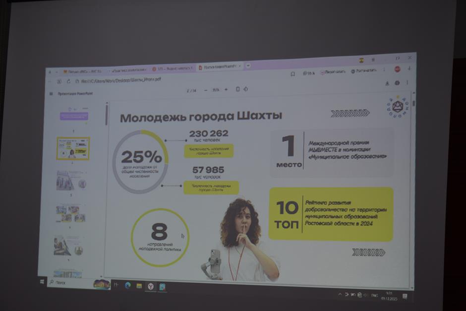 С информацией о реализации в муниципальном образовании «Город Шахты» мероприятий по работе с молодежью в 2025 году депутатов ознакомил Роман Кочетков (вопрос №3). В своем докладе он также акцентировал внимание на деятельности открывшегося после реконструкции центра ДонМолодой/г. Шахты, в котором уже побывали свыше 9 тысяч юных посетителей. Учреждение открыто теперь и по субботам – в это время проводятся занятия казачьей молодежи «Донцы».